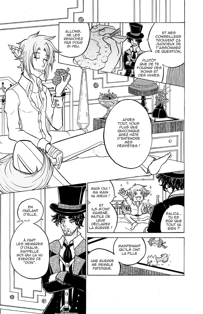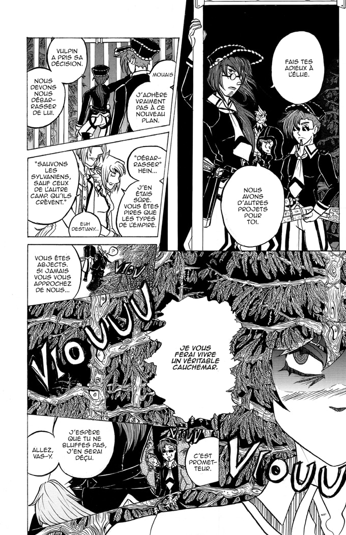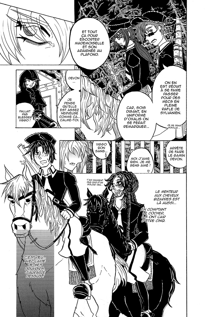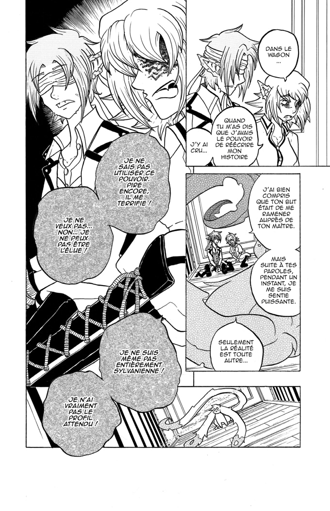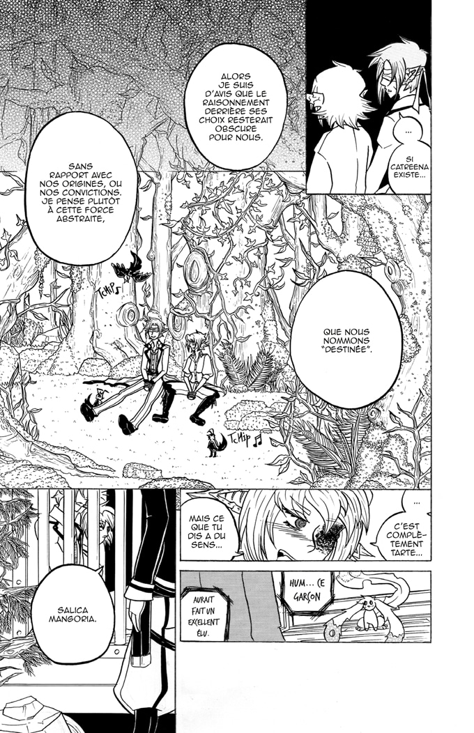 Je n'irais pas jusqu'au point de dire que c'est très manichéen, mais ça n'a pas l'air d'être le meilleur pour le personnage de Destiany. c'est la proposition de Dominique et les paroles de Salica qui m'ont fait tiquer dans ce chapitre, l'idée que "Nul ne pourra garder Destiany Fortunella en cage" va vraiment à l'encontre de l'attitude actuelle de Destiany qu'elle a depuis le chapitre 1, ou justement elle préfère rester en cage et éviter de participer dans les conflits.