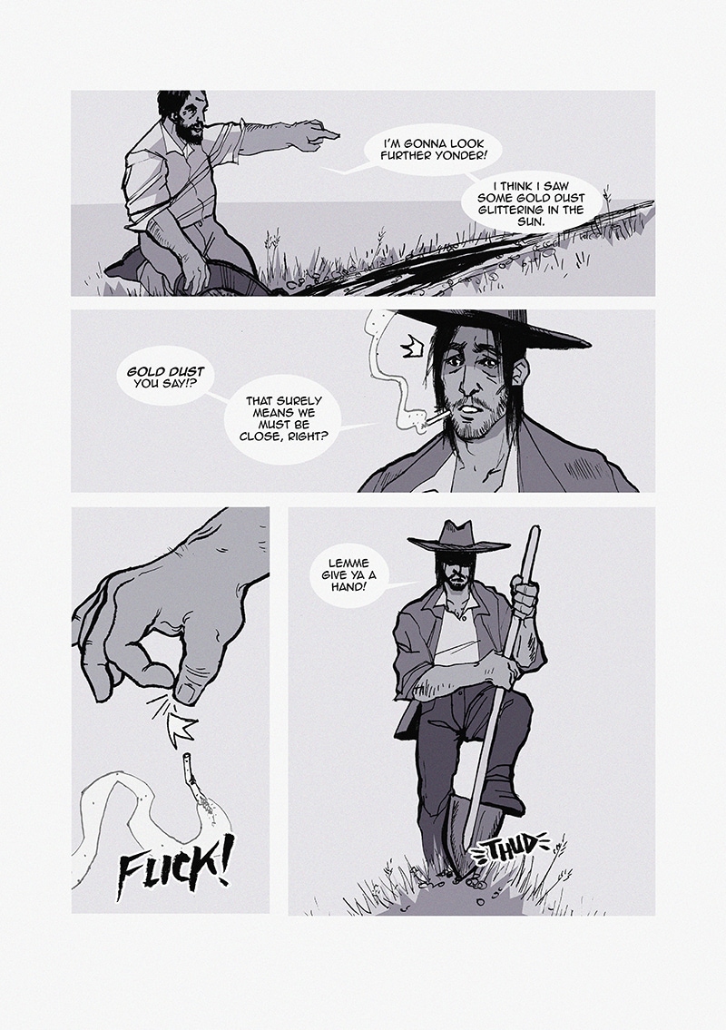 1885 - The Wild West. An uncle and his nephew go on a journey to find one of the last remaining gold sources to honour the memory of one of their family members who worked in the gold mines during the Gold Rush in 49. The trip quickly turns sideways, as the nephew gets more and more obsessed with the idea of getting rich and ditching his uncle. This is a project I did for uni and it's supposed to be informative, but I added a short story around it :) enjoy!