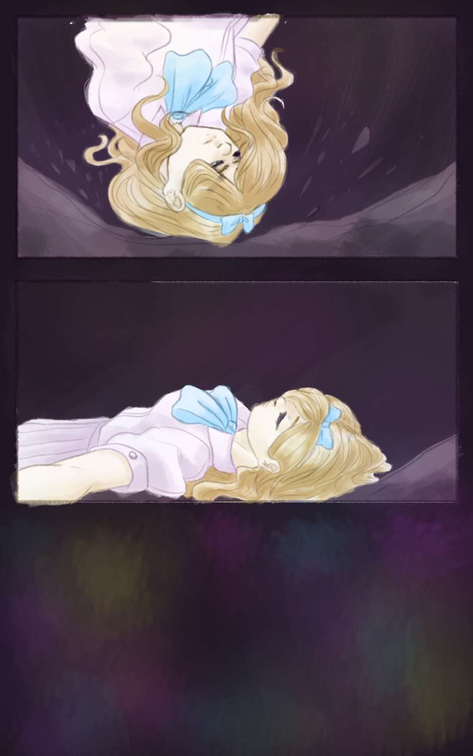 Sometimes Alice feels like she should just disappear- she can barely get through a day at school without having a nervous breakdown. But when she falls head-first into another world, crying in public is the least of her worries. Frogs yelling insults at her, murderous fairy tale villains, and maybe the scariest: talking to new people. How will Alice get through this dream world- and does she even want to return to reality?