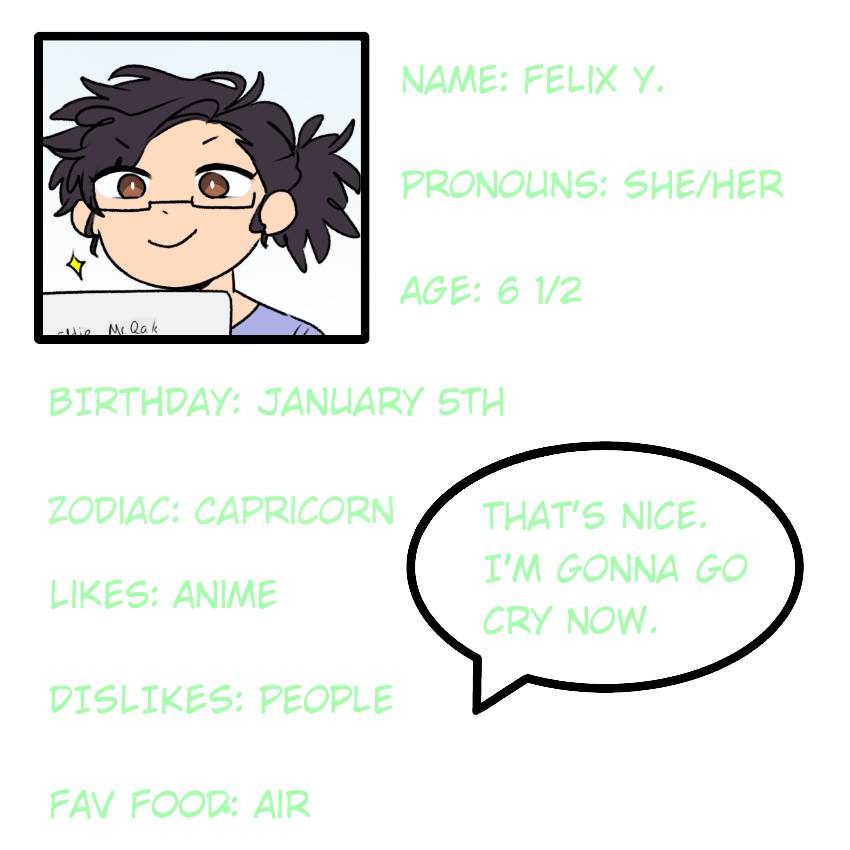 Credits to my friend Akira/Aiden for the smol character bios! This info is accurate according to our IRL selves, except for two of our names (lol) The dude in the dark apron’s name is Quoc btw, his bio will be out later