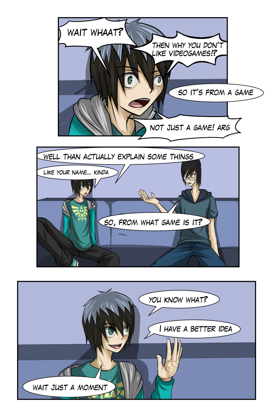 finally! yes! this didn't come out exactly as I imagine it, I had to cut off some panels or it would take forever to finish x,D anyways! this is one of my favorite chapters! 8D you see, this story originally was supposed to be an slice of life full of stupid videogames jokes, about one guy who's in love with a n00b xD nothing fancy, but in the end turn out like this~, and I regret nothing! 8D
