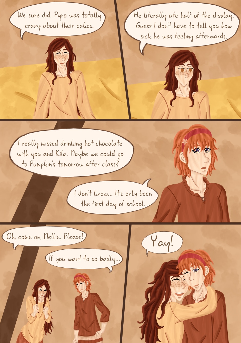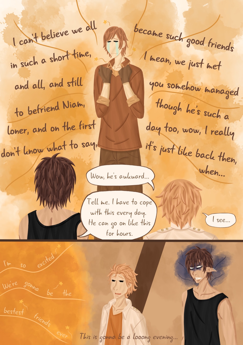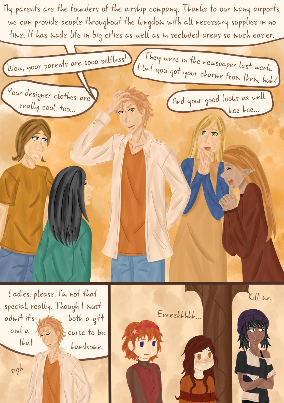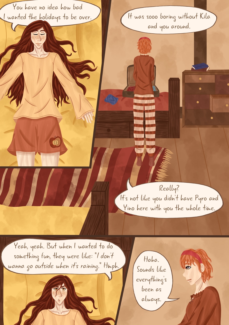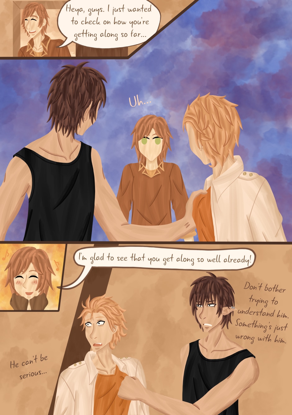 Saw you just finished this and immediately had to comment! I really love the colours you use and the outfits of the three main girls especially look lovely and vibrant. Really loved the character interactions too, I can already tell that Arino is going to have a hard time with Kila and Nero so I'm sure that will be fun in the future :)