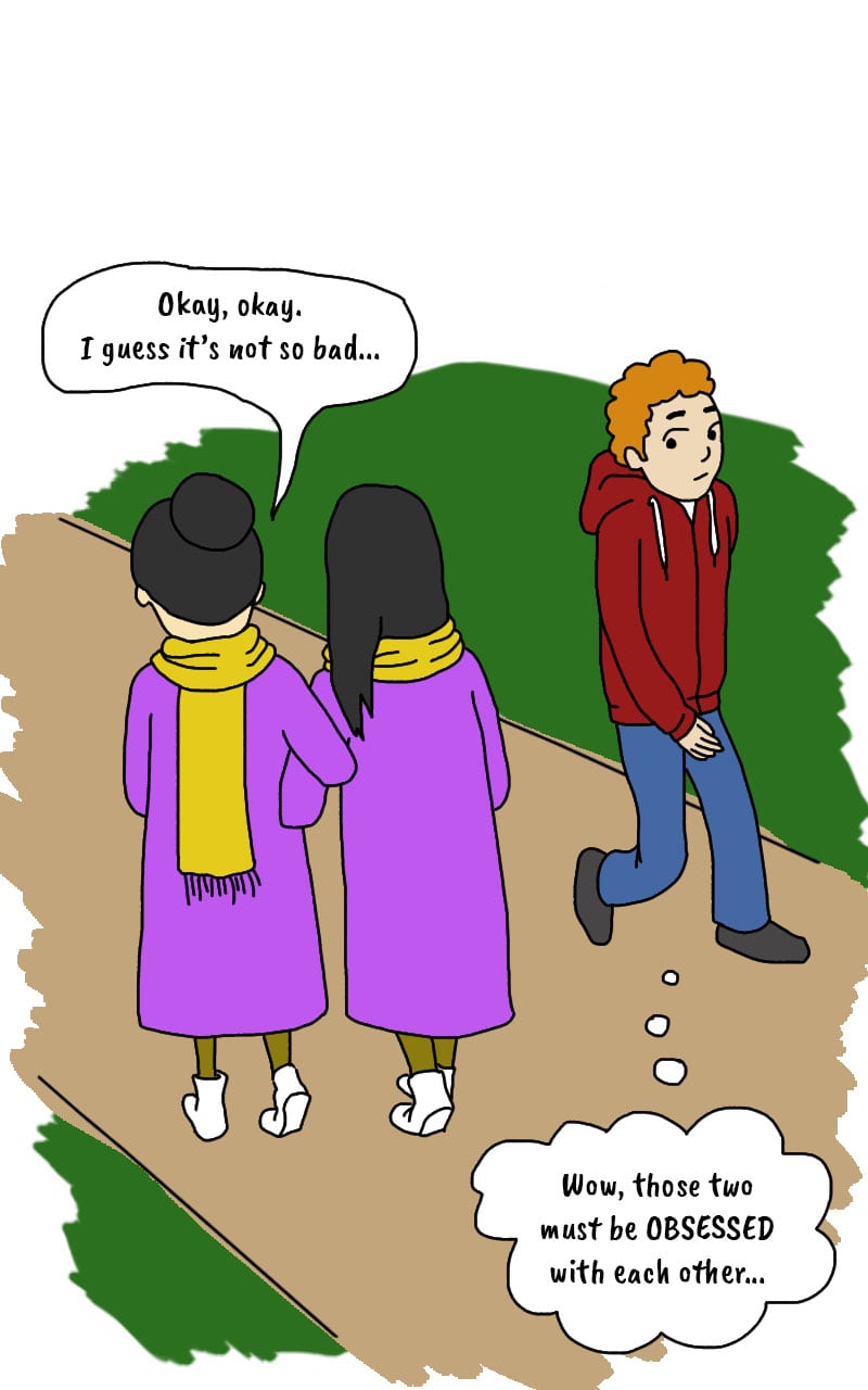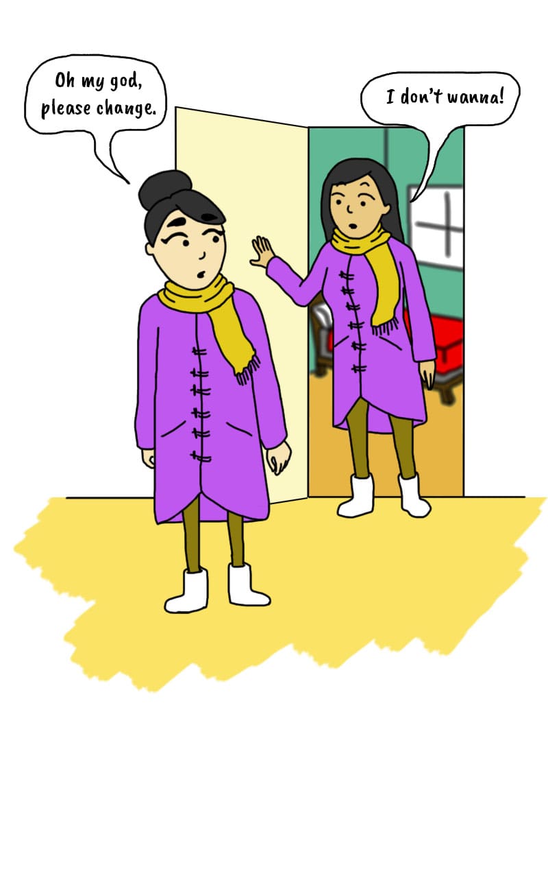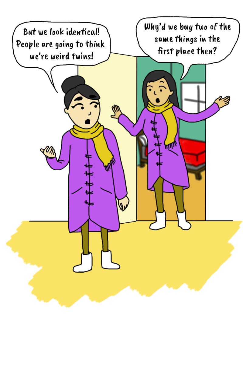 I mean, yes, we do go shopping together and buy the same clothes... but I don't know how we could have anticipated that this exact scenario would happen every other day.