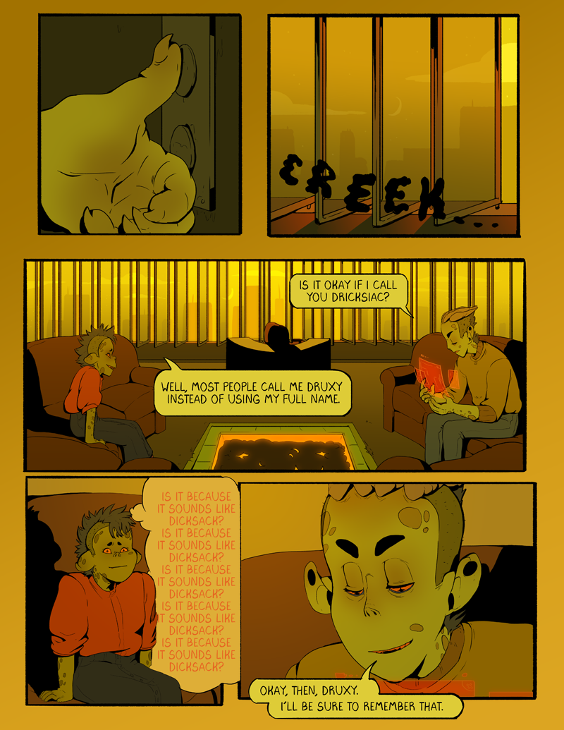 Sulfur is a comic about a wrath demon named Druxy, who isnt particularly talented at wrath. However, they’ve still managed to sell their soul to an internship this summer, so all they have to do is survive that and eventually maybe they’ll get somewhere! Like, if they live through it.