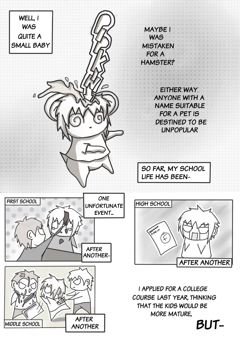 P+T is a project that was started back in 2010 and first made it's way onto the internet in 2011. It's the story of Pipkin (Pip), an 18 year old college student who has been bullied all of his life, for his name and hair colour.