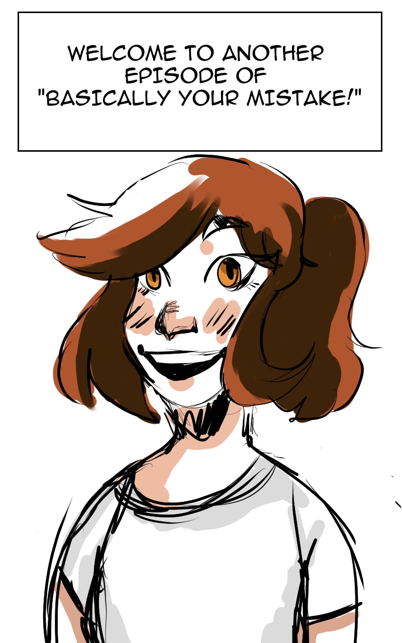 Welcome To Basically Your Mistake! A hopefully daily update on my process to create a new webcomic. Most of my struggles and ideas will be shared in this comic for entertainment/insight, so feel free to judge and help me create something worth reading!