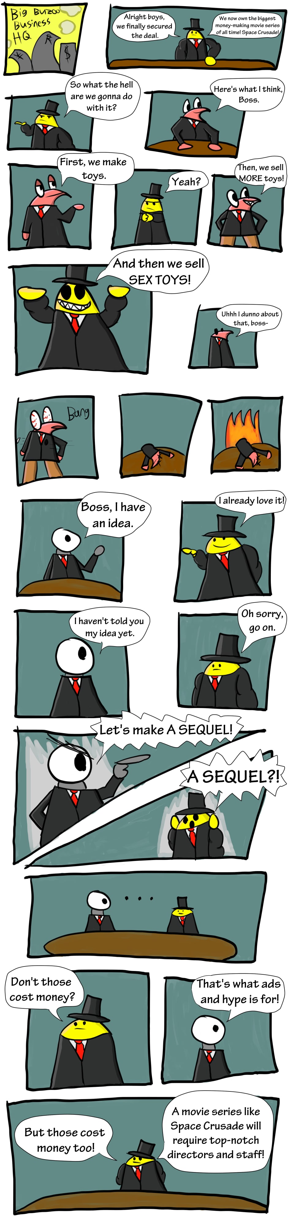A major corporation gets the rights to an iconic movie and they proceed to make a sequel. Instead of hiring actual directors and writers, they decide to hire mercenaries instead, so they can cut costs.