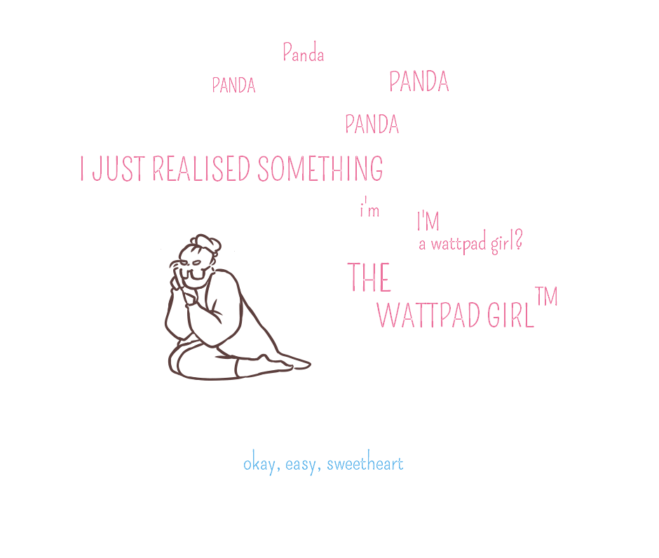 i hope it won't be seen as a hate toward girls on wattpad. it's a joke, it's meant to make fun of the stereotype of The Wattpad Girl TM (i still enjoy reading books on wattpad, some of them seriously, some as guilty pleeasures)