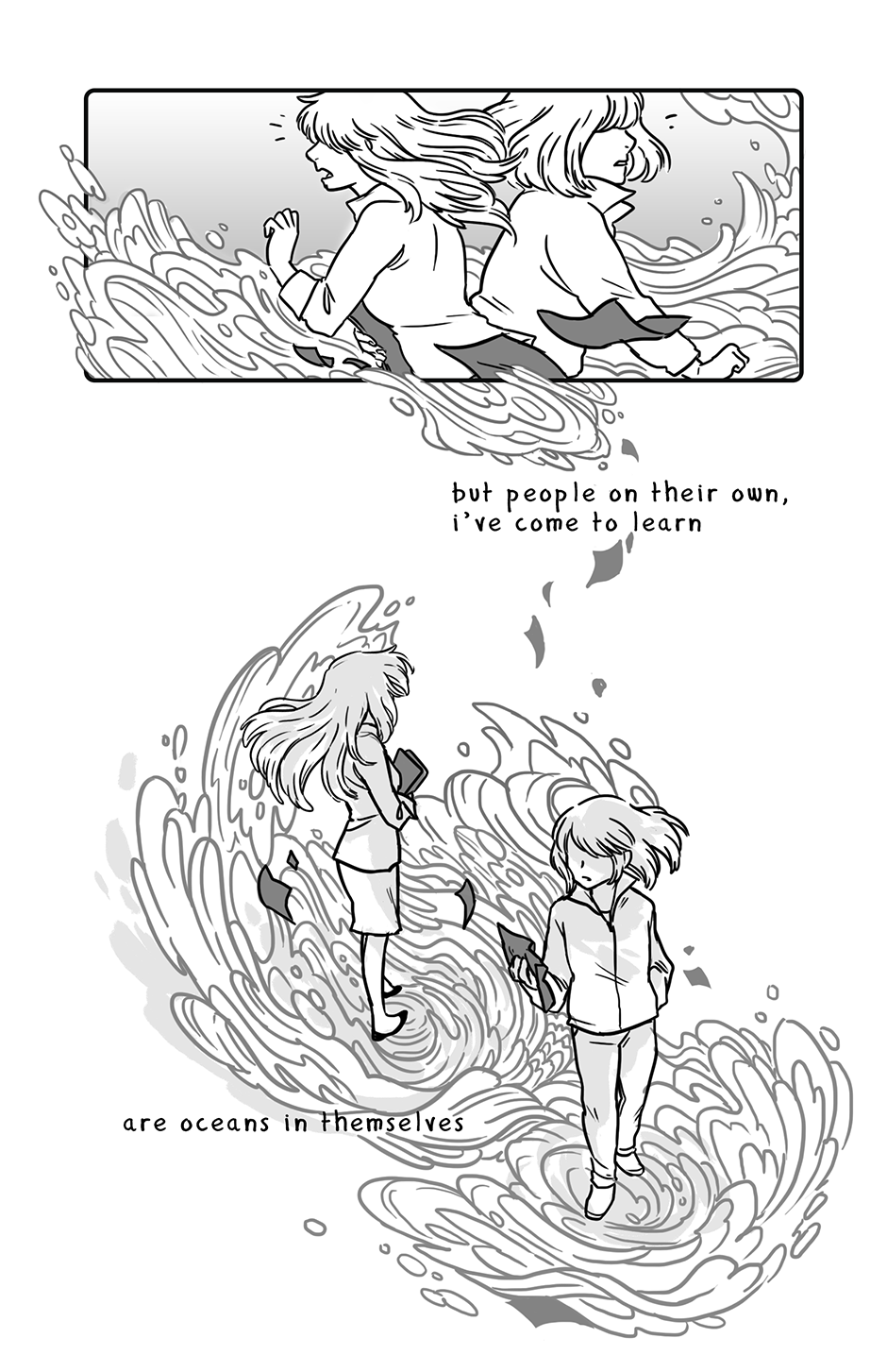 The full comic is available as a PDF through: krayonela.itch.io/bodies-of-water