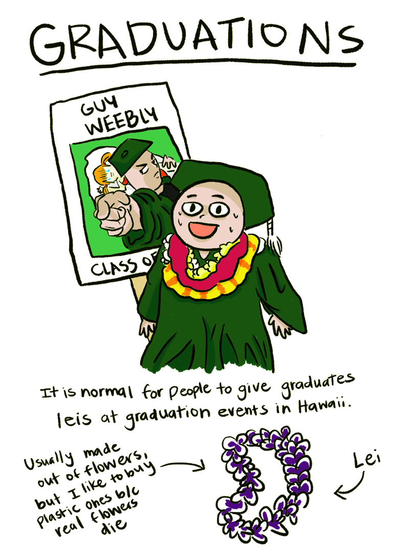 Graduation culture in Hawaii. I feel like without leing, it would be so boring.
