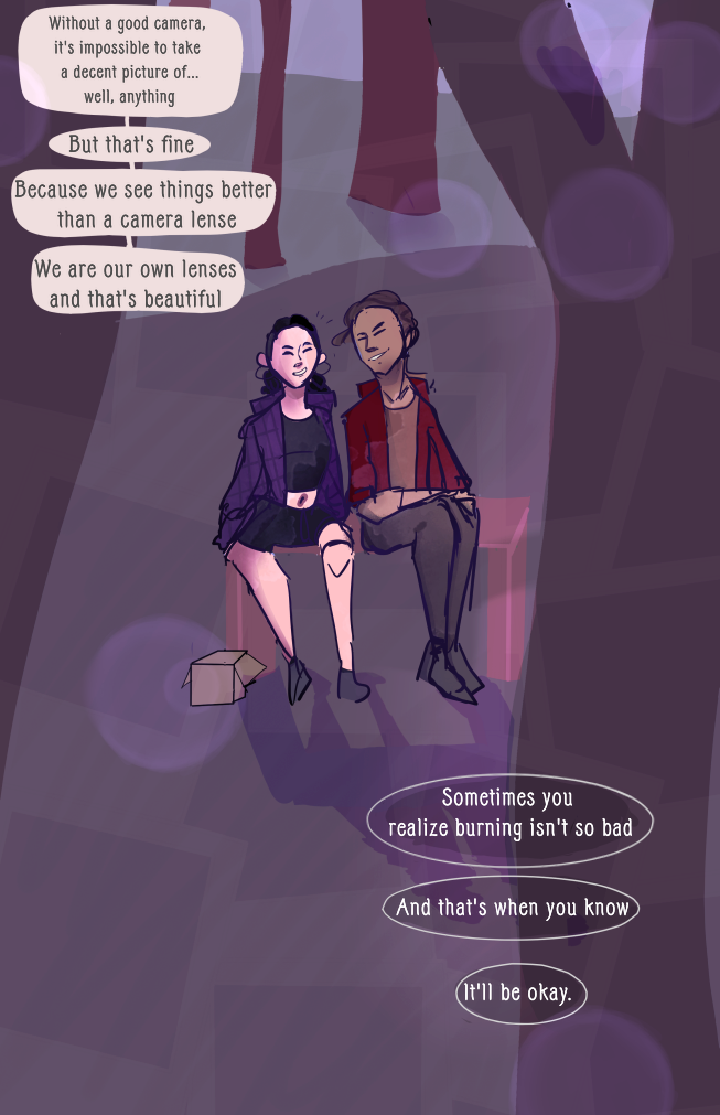 Juno and Erastus have been best friends since either can remember-- making potions, playing with spells, and taking pictures on Juno's Polaroid camera. But now that they're older, Juno believes that they're drifting apart after learning that Erastus never told her about the fires that corrupt his mind. However, there are two sides to every story. Will Juno be able to contact her unwilling friend, or will Erastus continue to hide things from her? "Through Our Own Lenses" explores a high fantasy world with an array of topics such as friendship and mental health.