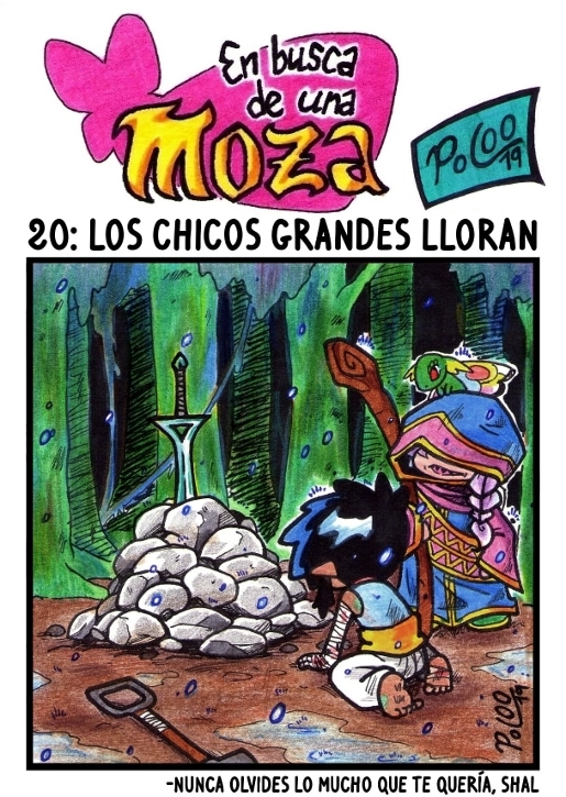 Como siempre, una escena del pasado en la portadilla. En ella, Shal llora frente a un túmulo improvisado hecho para su maestra, acompañado de la bruja Baba Yaga y un joven Meree...