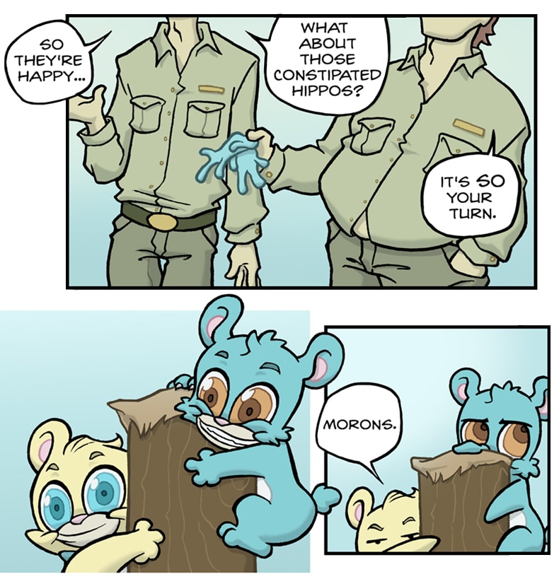 The bears have a complicated relationship with the oblivious zoo staff.