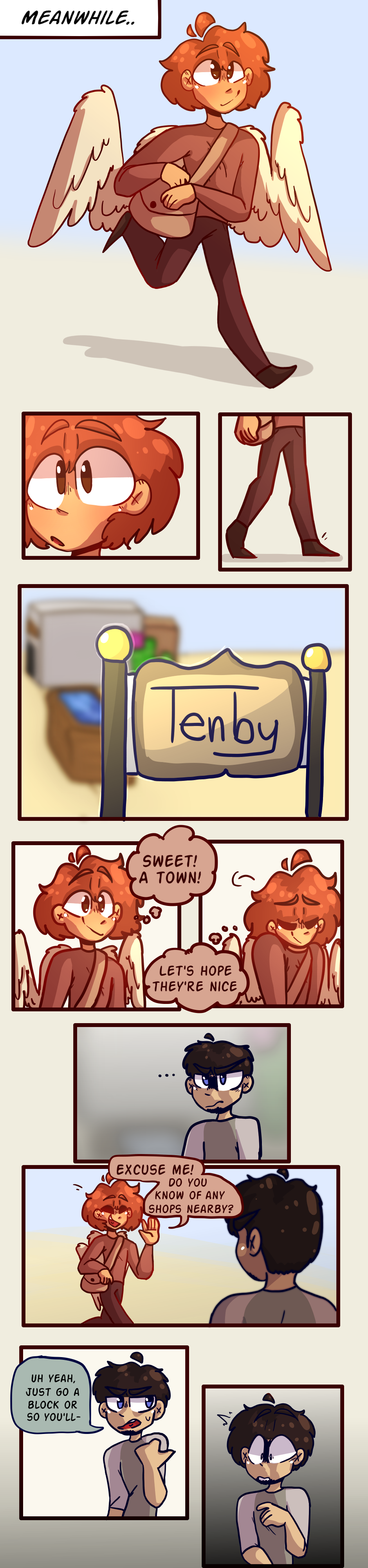 Aiden asks for directions from a citizen in Tenby, but it turns out they aren't too fond of hybrids. (Sorry for the late update! I got caught up with finals and traveling)