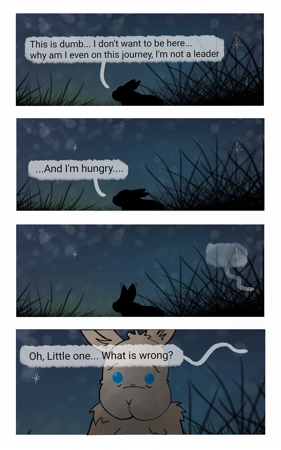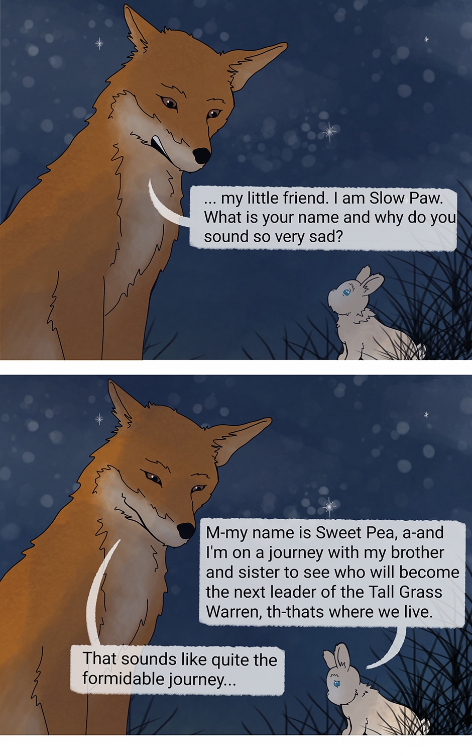 Juniper Blossom, Ginger Root, and Sweet Pea set off on the journey of their lifetime, a journey to their creator Gaia that many other rabbits had made before. The prophecy says that one of them will become leader and that they will lead their warren into the future... but other plans are in the works. Who can the kits trust? and will they remember to stick together?