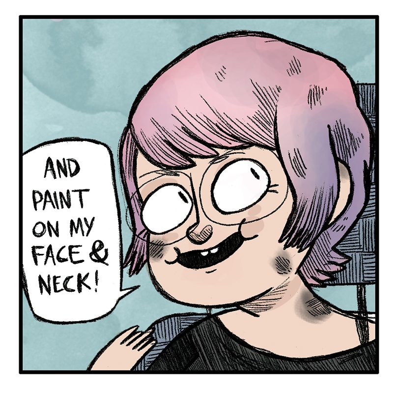 Why are your thighs all scratched up? And why is there an elephant? I feel like there are more stories to be told here