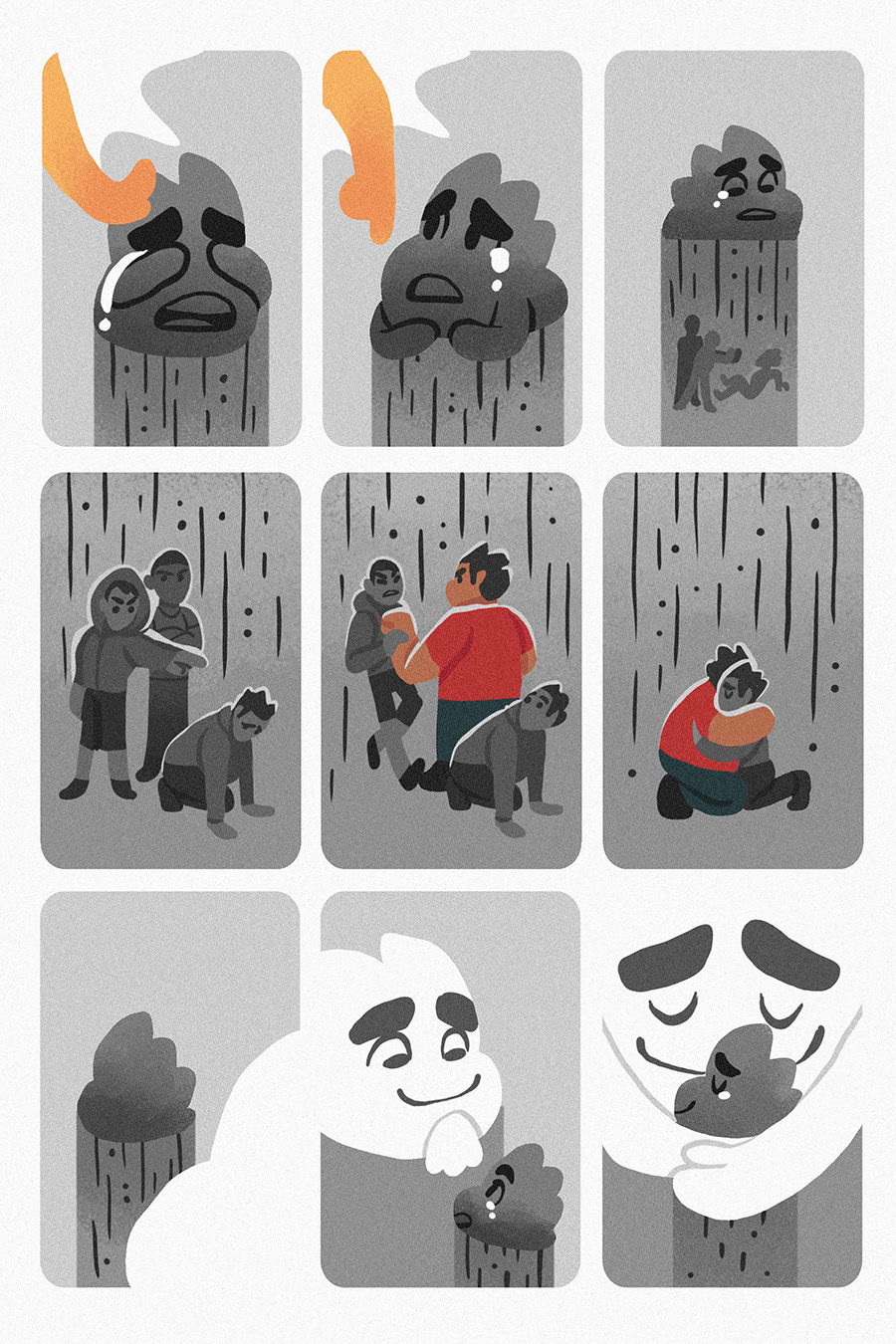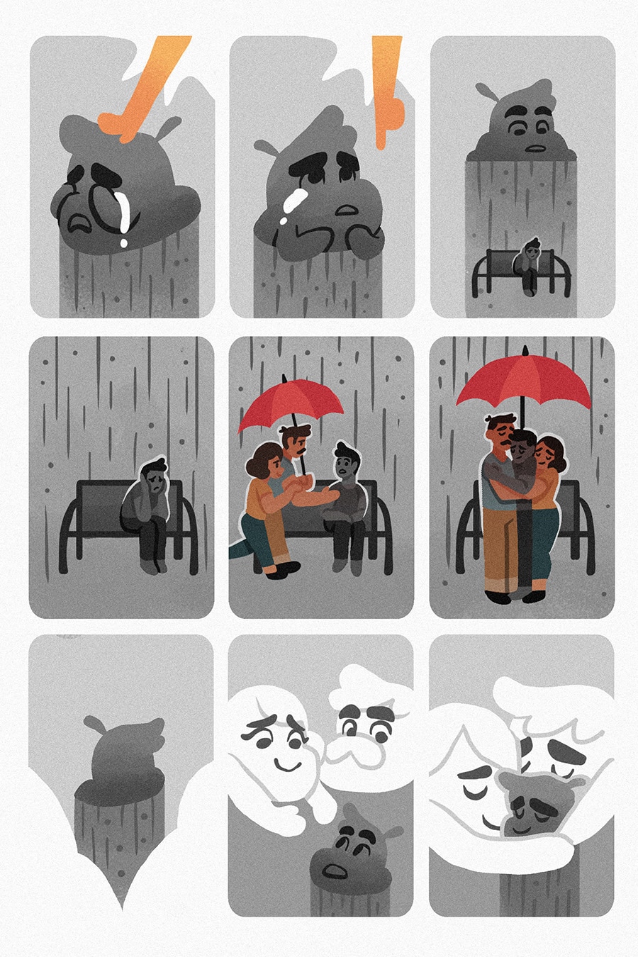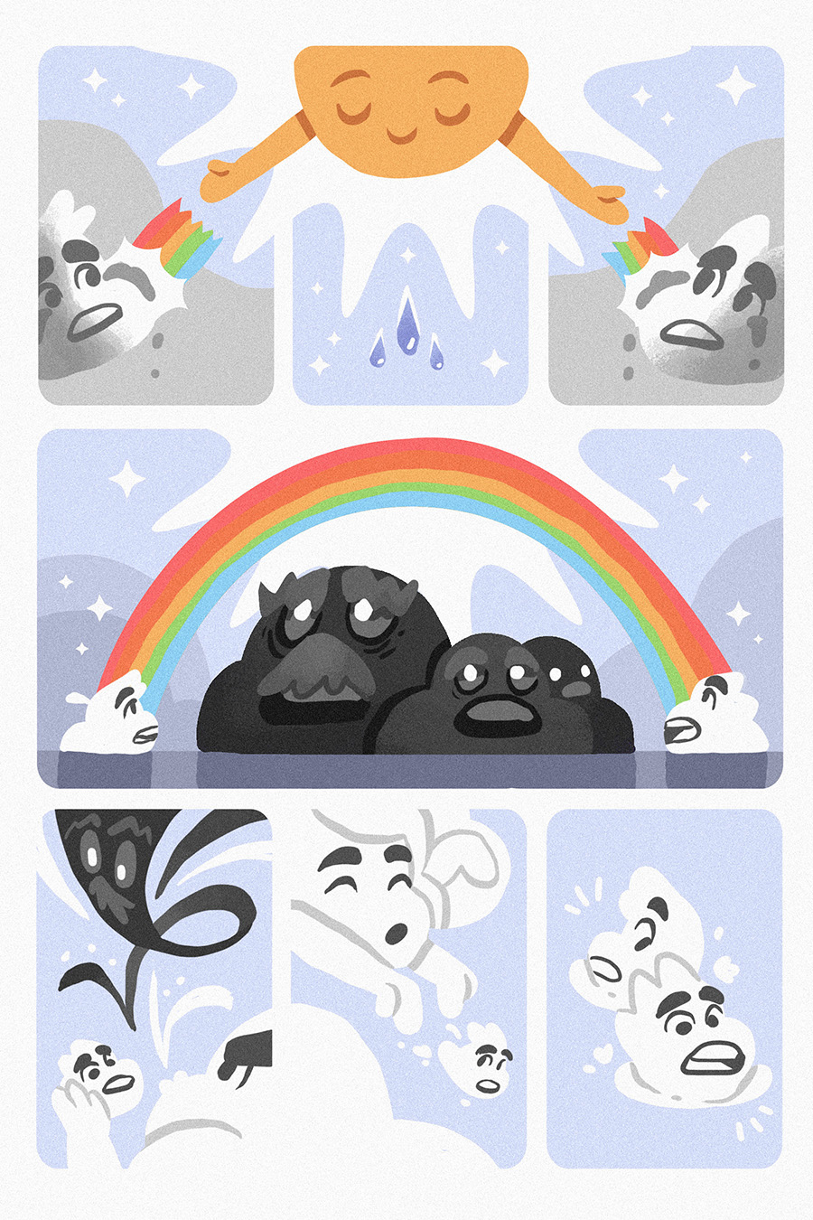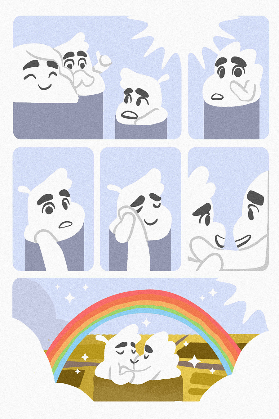Sometimes, you wonder why there's a rainbow after the storm. It's the cloud couple who were free from the fear and pain. The rainbow is made of sadness from the rain and hope from the sunlight