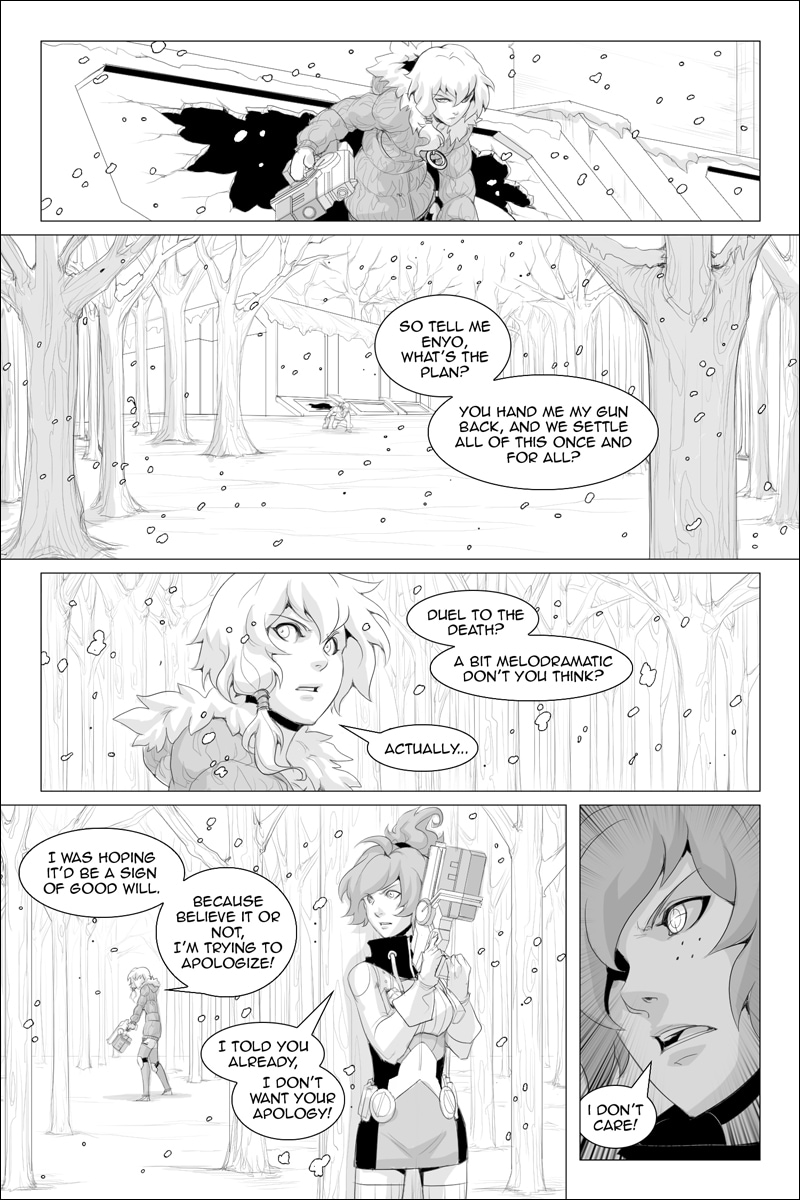 "Zerus fights Athena for answers while the past is recalled as Enyo and Athena begin a battle of their own"