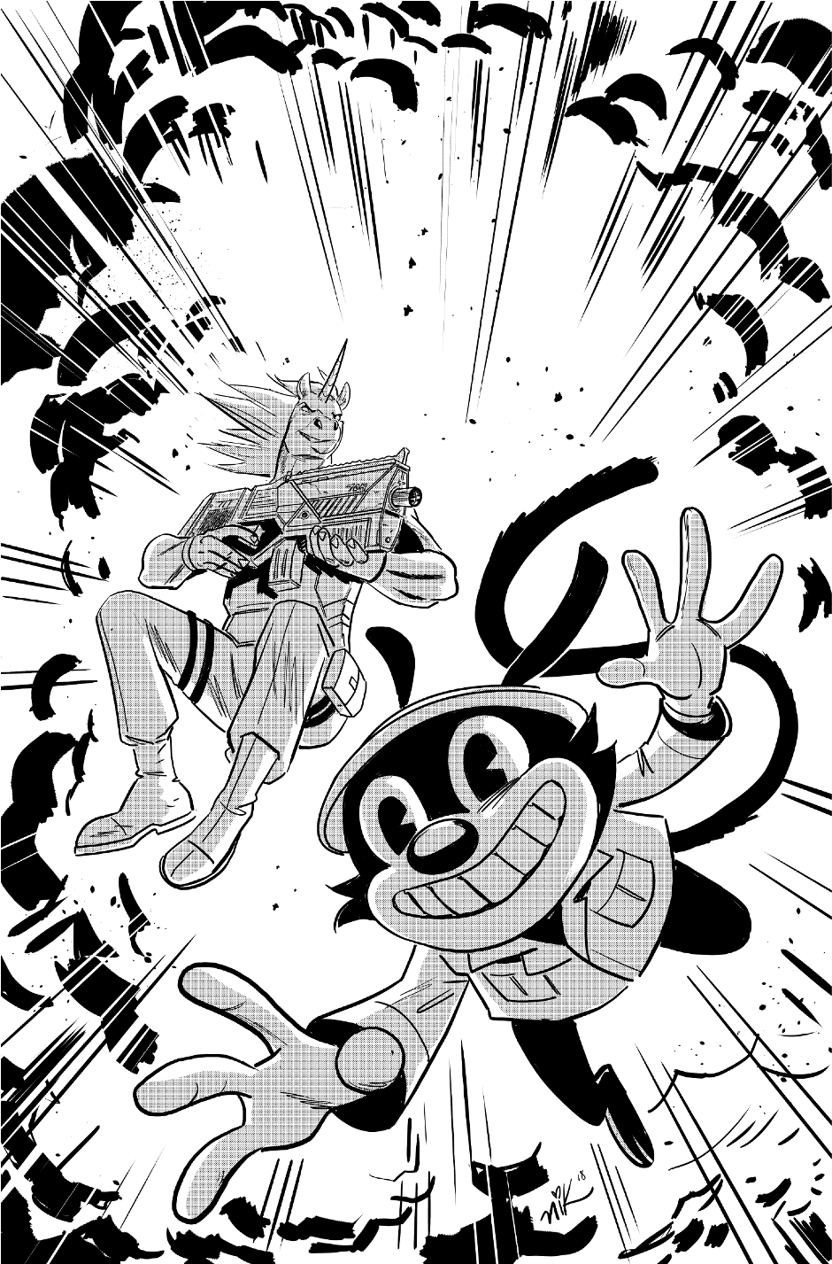 Tom and Artie is about two interdimensional best buddy mercenaries from different worlds. Each contract they take is a wildly different zany adventure as they meet strange and interesting characters to fight and trick.