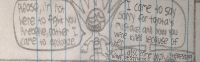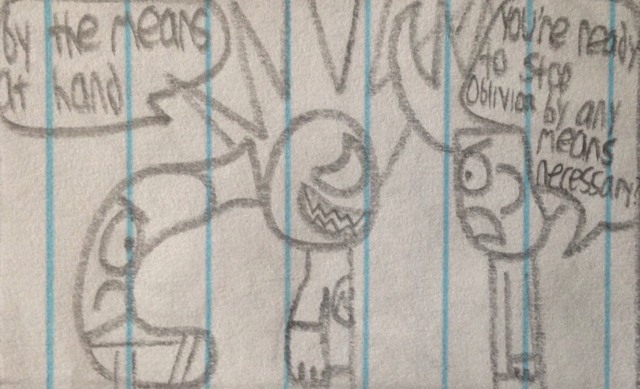 Awkward Prowler travels to the Action Fruit's residence to inform them of that Destructo is in fact still alive and offers to show them. Meanwhile,Triangle Ninja, Elly V, and Man Snake Find Destructo in a prison cell, and seek to break him out in order to use his efforts against Oblivion and his invading army.
