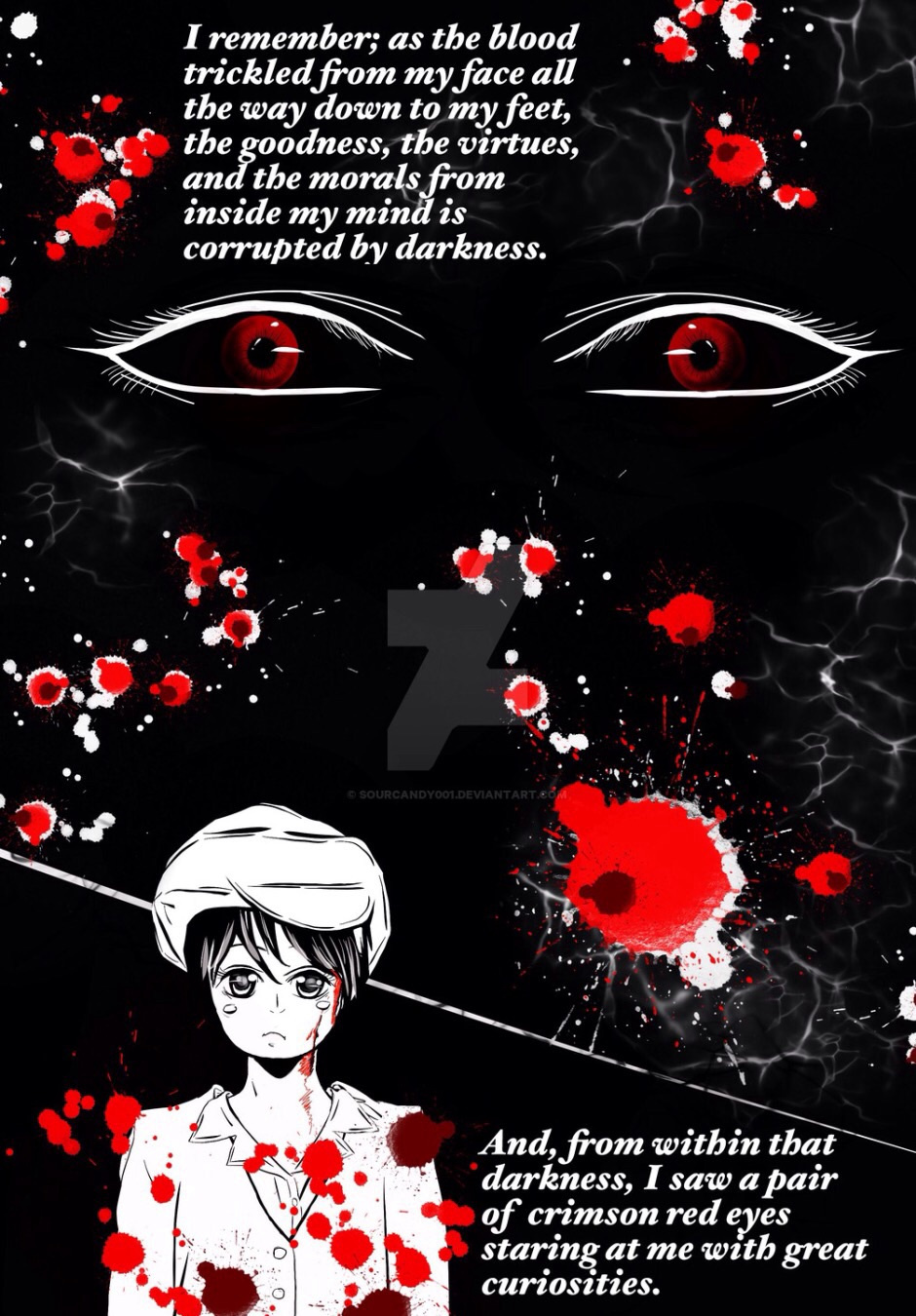 After witnessing the death of his father, mother, and sister by thiefs, Corbertt Merle, is for sure, on a dead bed by the sea. However, a devil by the name of Lucifer decided to go against the odds and resurrect the boy. Admits the death, blood, and hell, Corbertt's virtues had been tainted by sins, evils, and immoralities, and the devil would love nothing more than a corrupted mortal to be his eternal pawn. Is the devil the one in control, or is he the one being controlled?