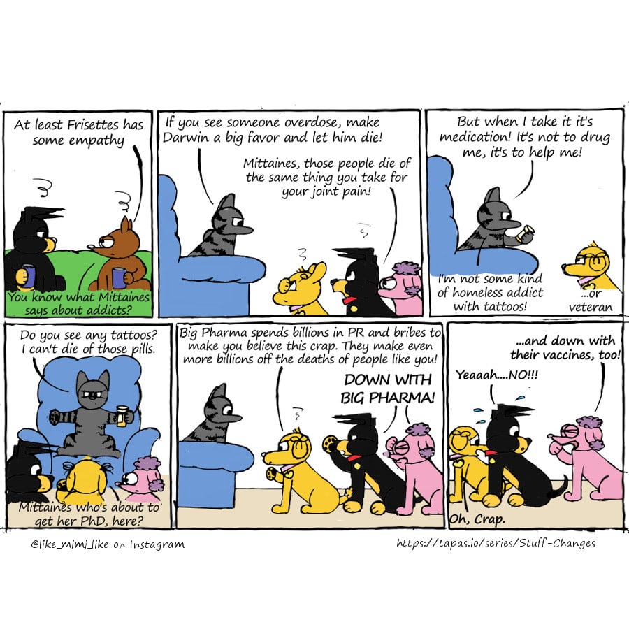 One of the main reasons it took so long for anyone to notice there is a problem is because we've always expected drugs to comme in tin oil or plastic baggies sold in an alley between two sketchy, usually black or otherwise ethnic young men so we don't see its true face when it comes in an orange prescription bottle signed by someone with "MD" after his name, advertised online and dispensed by a pharmacist in a labcoat to a suburbian old man who gobbles them down like M&Ms without any caution precisely because all those lab coats and that prescription bottle makes him feel so above those "junkies on the street" while he is taking the same molecule, having the same effect and the same addiction.