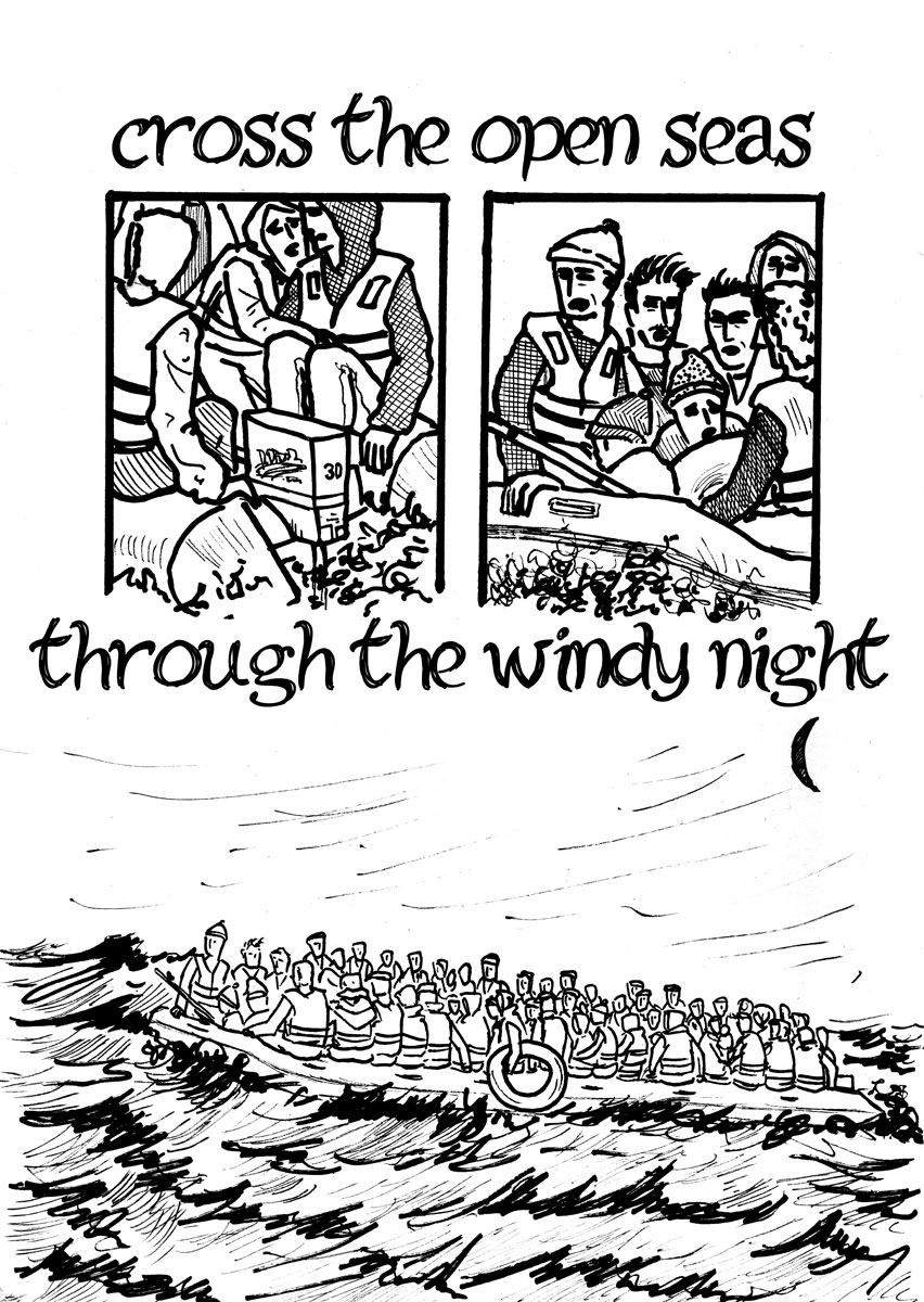 A collection of illustrated poems with actions that take place in a windy night. The poems are "Let us describe" by Gertrude Stein, "The Rider's Song" by F.G.Lorca, an unnamed poem by N. Hikmet and two works of my own ("Arrival" and "Close the Window")