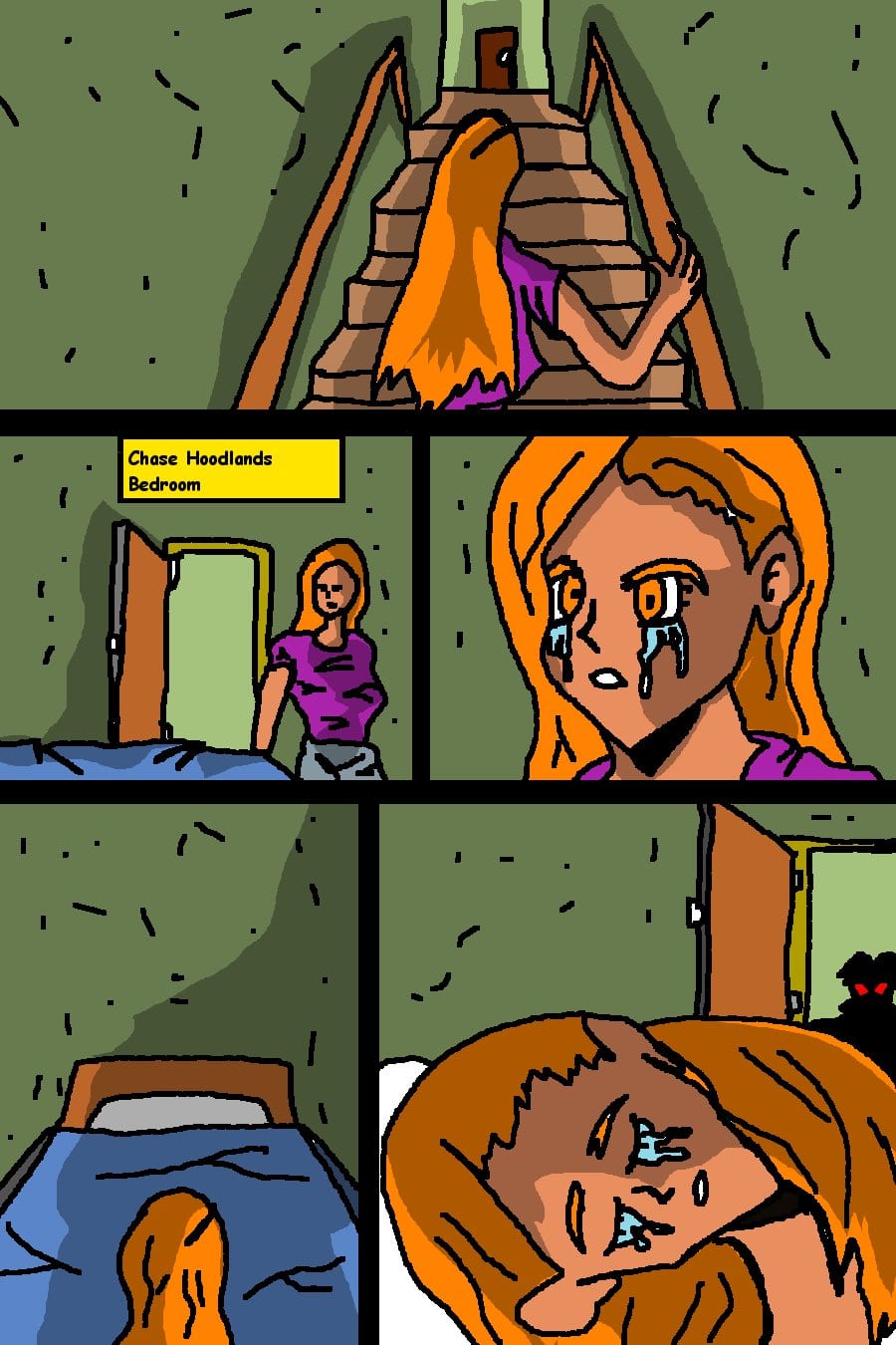 Mrs Hoodlands falls asleep on her dead sons bed.. And well the undead don't sleep