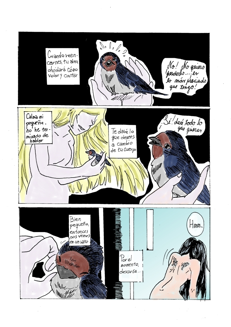 Me pregunto si acaso ella quería el cuerpo del pajarito para ser libre, y ahora el ave está atrapada y sin posibilidad de volver a volar :(