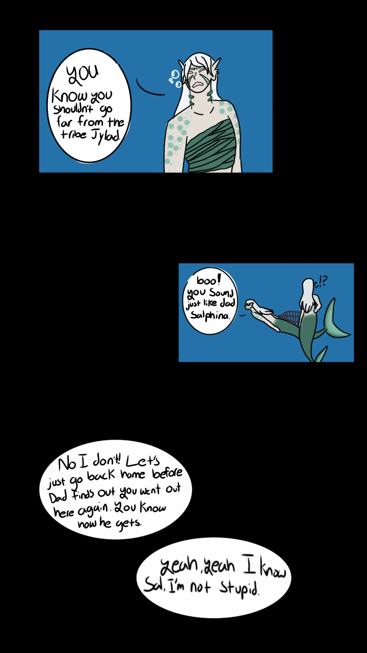 Eric Chavez became a lighthouse keeper since their parents retired and hand it down to him and he accepted.. Though he soon became lonely, and even when they have two close friends, the loneliest from the lighthouse is consuming. To fill the loneliness, they distract themselfs, they write about their daily life and rips out the page, putting it in bottle and throwing it out to sea. Jylad is a merfolk who lives with their tribe and is soon to fill the role of the leader once their father pass, dies or retires. He loves the tribe but feels that such roll isn't for them and the pressure is too much. When they were near a few rocks to bathe in the sun for a bit he found a bottle. Out of curiosity they open it and read the letter. They were intrigue. And everyday they would go up to those certain place of the rocks to get the bottles and read it and soon fell in love with them. Will the two meet? Will Eric fall for Jylad like he did? Who knows that's, the point of the comic.