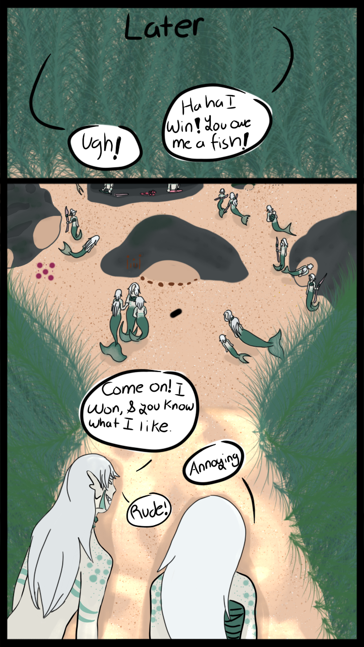 Eric Chavez became a lighthouse keeper since their parents retired and hand it down to him and he accepted.. Though he soon became lonely, and even when they have two close friends, the loneliest from the lighthouse is consuming. To fill the loneliness, they distract themselfs, they write about their daily life and rips out the page, putting it in bottle and throwing it out to sea. Jylad is a merfolk who lives with their tribe and is soon to fill the role of the leader once their father pass, dies or retires. He loves the tribe but feels that such roll isn't for them and the pressure is too much. When they were near a few rocks to bathe in the sun for a bit he found a bottle. Out of curiosity they open it and read the letter. They were intrigue. And everyday they would go up to those certain place of the rocks to get the bottles and read it and soon fell in love with them. Will the two meet? Will Eric fall for Jylad like he did? Who knows that's, the point of the comic.