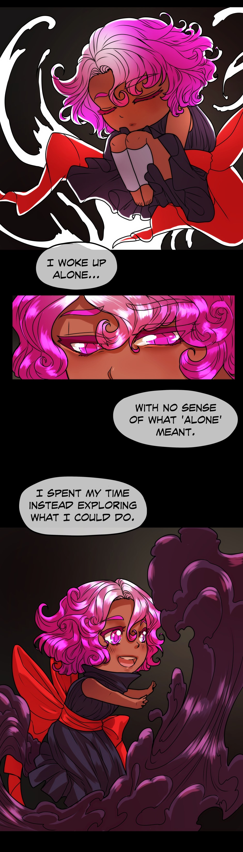 Hydrogen wakes up shortly after the Big Bang. Alone, she begins to create stars, and to her surprise, from the very first one comes Helium.