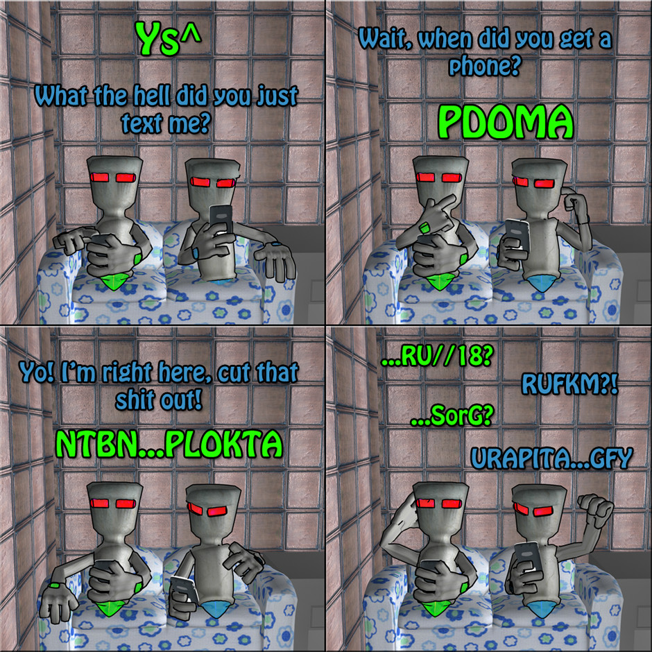 I hate it when I get text messages from people and they’re missing letters. Half the fucking time text message short hand doesn’t work unless you’re 1337….fuck them.