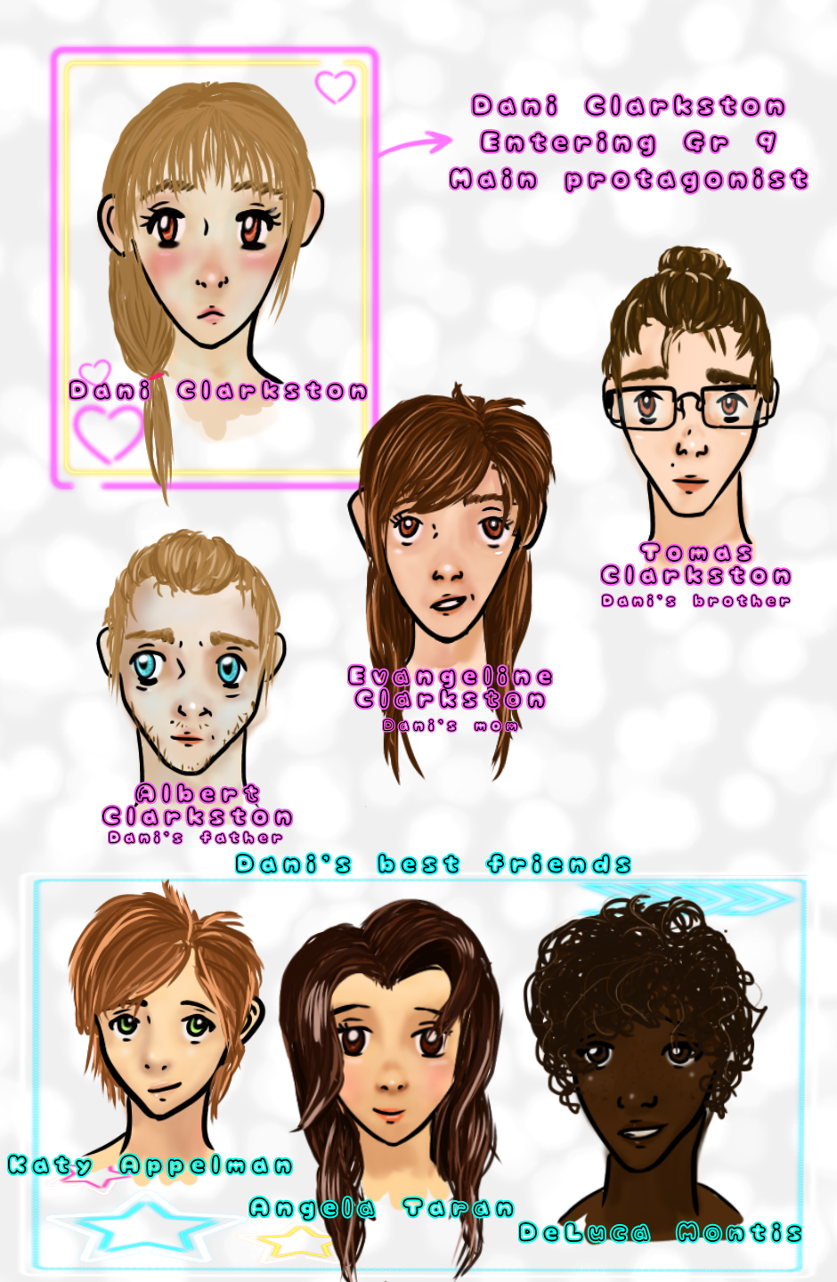 Here are all the main characters in full-colour ~ I'm not skilled in digital colouring so I hope y'all don't mind.