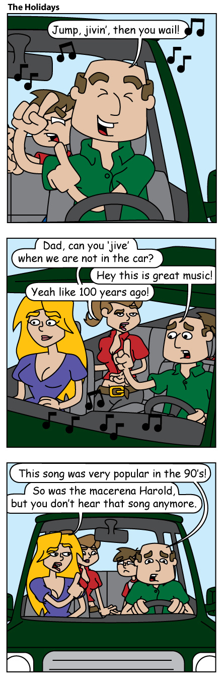 The Holidays is a family of four on vacation. They spend most of their time cooped up in the family car, and the rest of the time they fall victim to various tourist traps. Enjoy a dose of family fun every Friday with Harold, Helen, Hailey, and Harvey Holiday!