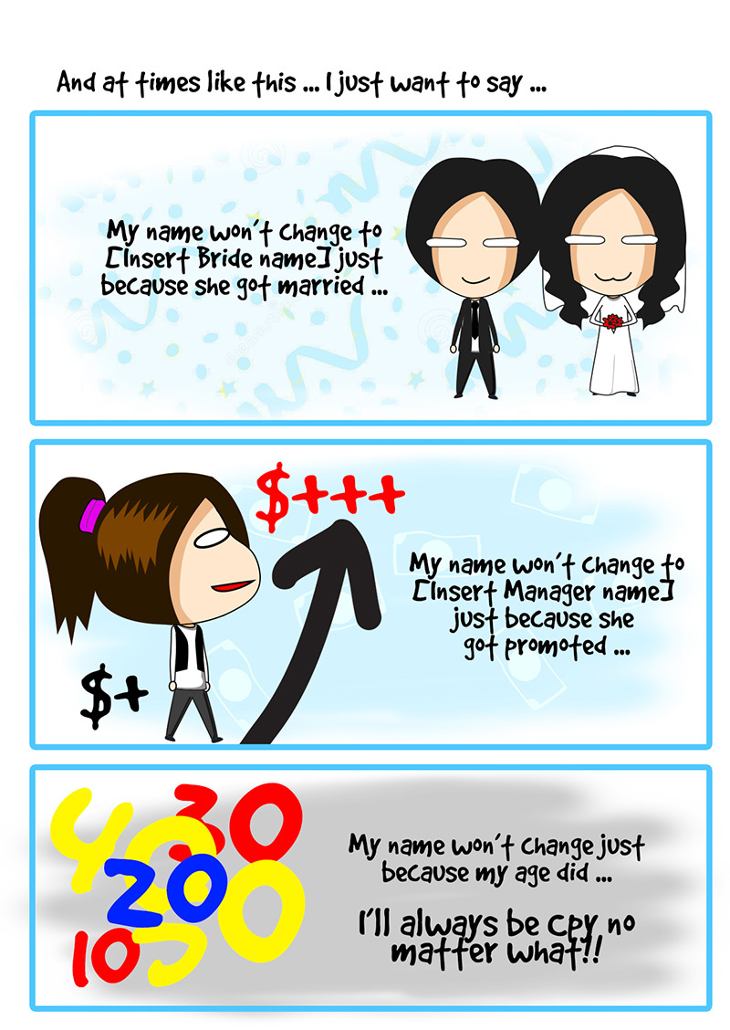 Is CPY stand for your fullname? =D Maybe only will change to 'Mrs CPY' when married~