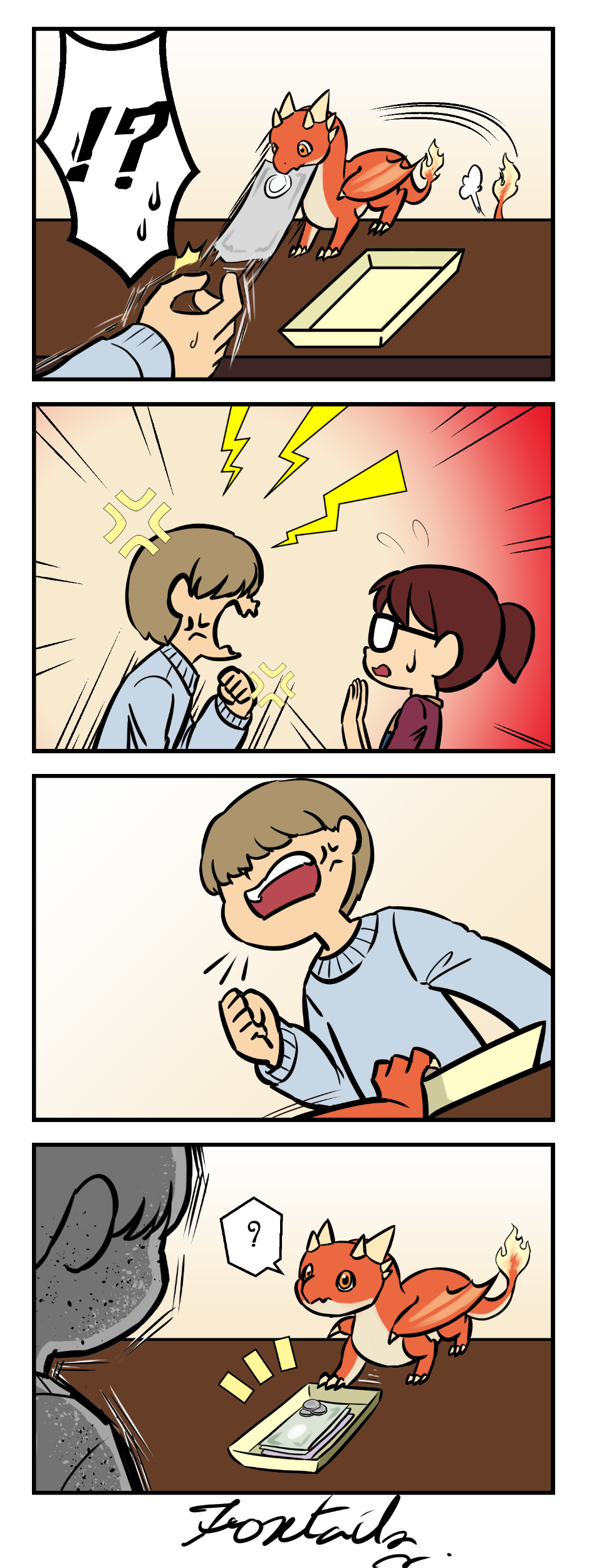 He might be tiny, but I wouldn't scold a fire dragon, who took your riches. That's just rude!