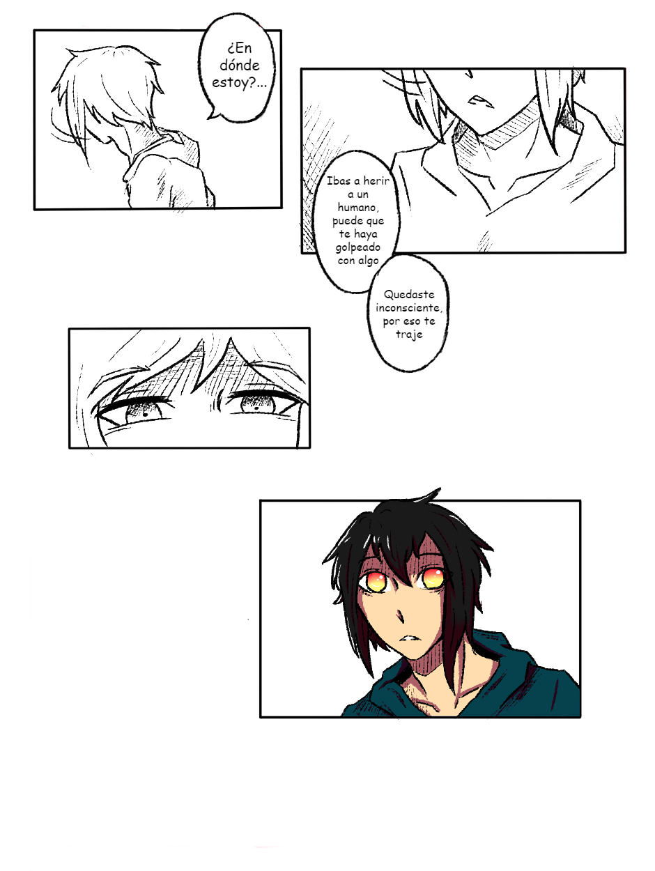 La parte de arriba esta en blanco y negro por lo que es así como lo ve él, por el impacto del golpe.