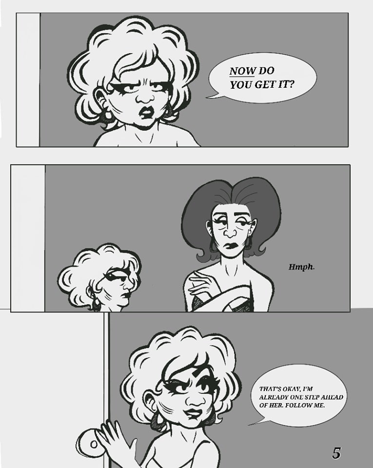 Lightning (aka Martin Anderson) is a drag queen from LA, trying to adjust to the drag scene down in New York. She meets two other queens, Enigmata (Adam) and JuJu (Jamal), and asks to work with them. Both Enigmata and JuJu, however, have mixed feelings about letting a random queen perform with their troupe after their best performer Vanity left them for the limelight. Will Lightning flourish in this completely new drag scene, or will the competition crush her? A new page is up every other Sunday!