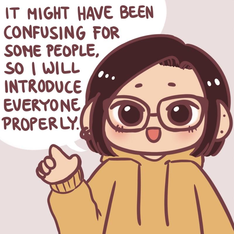 Introducing everyone that appeared so far, in case some people were confused (*「・ω・)ン?
