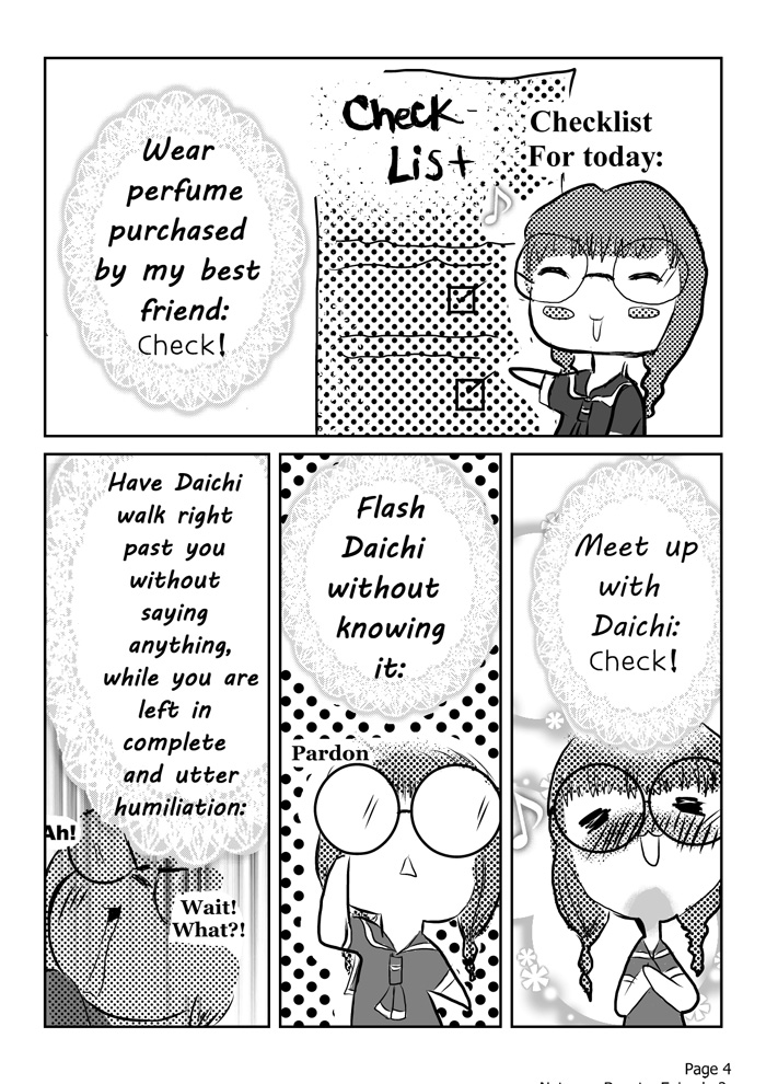 This is a story about a high school student named Aizawa Misumi who constantly tries to approach the guy she has liked for two years. However, now that she has gained the courage to attempt it, every attempt is a major fail and something always seems to get in her way. Such as her strange new neighbor, a cocky smart alack and a tanned delinquent.