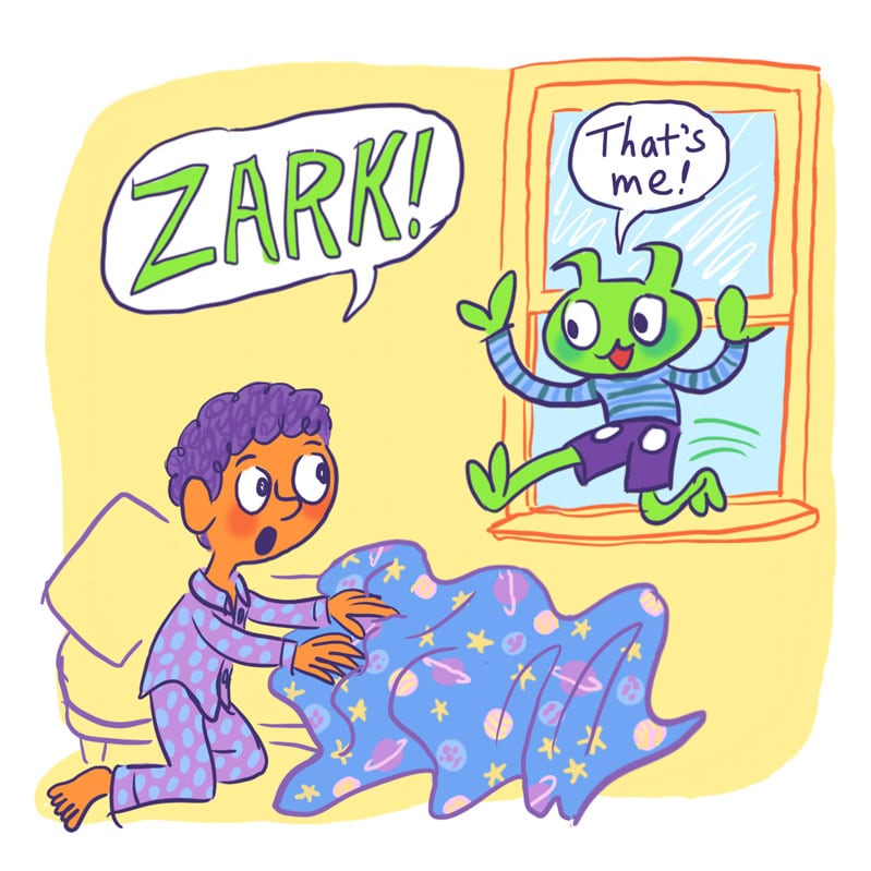 Mark just moved to a new town, and he’s wishing for a new friend. He didn’t expect one to drop right out of the sky, or for that new friend to be a Martian! Despite being green, having antennas, and using a flying saucer for transportation, Zark is a kid just like Mark. Fun-loving Zark helps Mark come out of his shell, while Mark tries to keep Zark out of trouble.