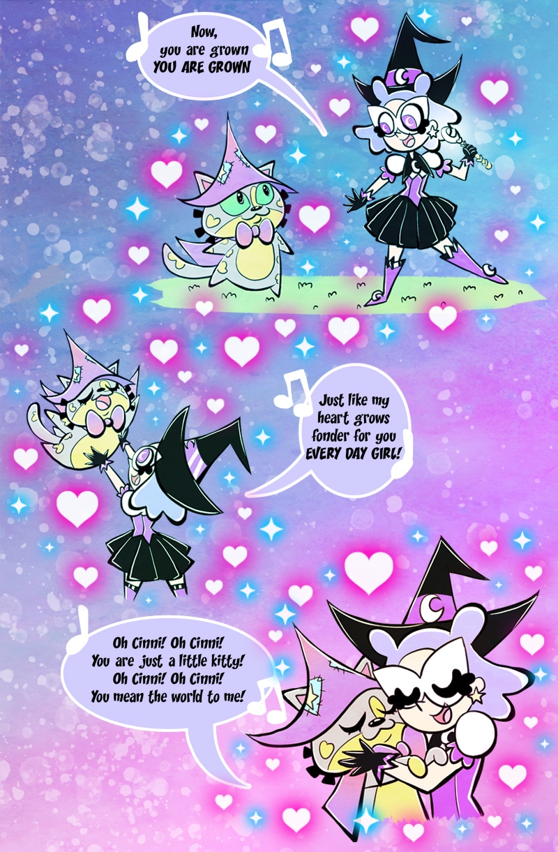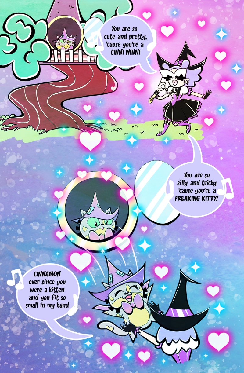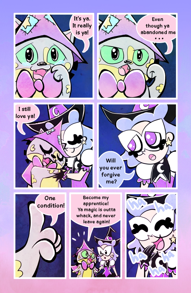 Magikats! is all about magic, cats & friendship! Lavender Lovecraft is a human witch, with a Fairy Dog Mother named Angel. She becomes the apprentice of the Sassy Cat, Cinni Winni, in the cat kingdom known as Grimalkin Woods. Follow their adventures along with Mx. Moss the Moss Boss and Magic BoyBoy the Cat. The Gang uncover the secrets to the Land of Cha, the mystery of Mojo Runevale, the separate Kingdoms, all while escaping Nether's clutches and eternal night!