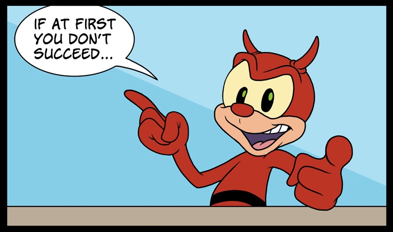 Burny is a cute little imp with a big heart but is often misjudged due to his physical appearance resembling another more unsavoury character described as red with horns and a fork tail.