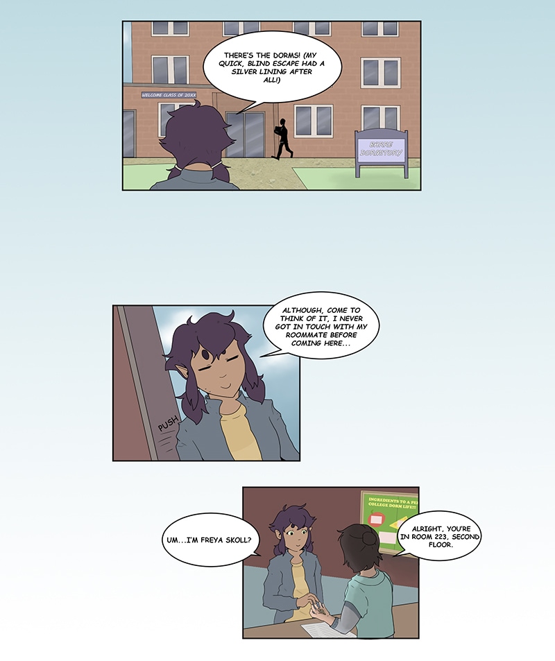 Sometimes, the world is just far too small. At least, that's what Freya, a weremage with a mysterious ability, has been learning since she arrived in the city of Mircaster. When she finds herself tied up with Felix, her plant mage TA, everything quickly spirals into a roller coaster of capitalism, alchemy, murder, and social anxiety that will either drag them into darkness, or finally free them both from the traumas of their dark, elusive pasts. UPDATES EVERY OTHER WEEK