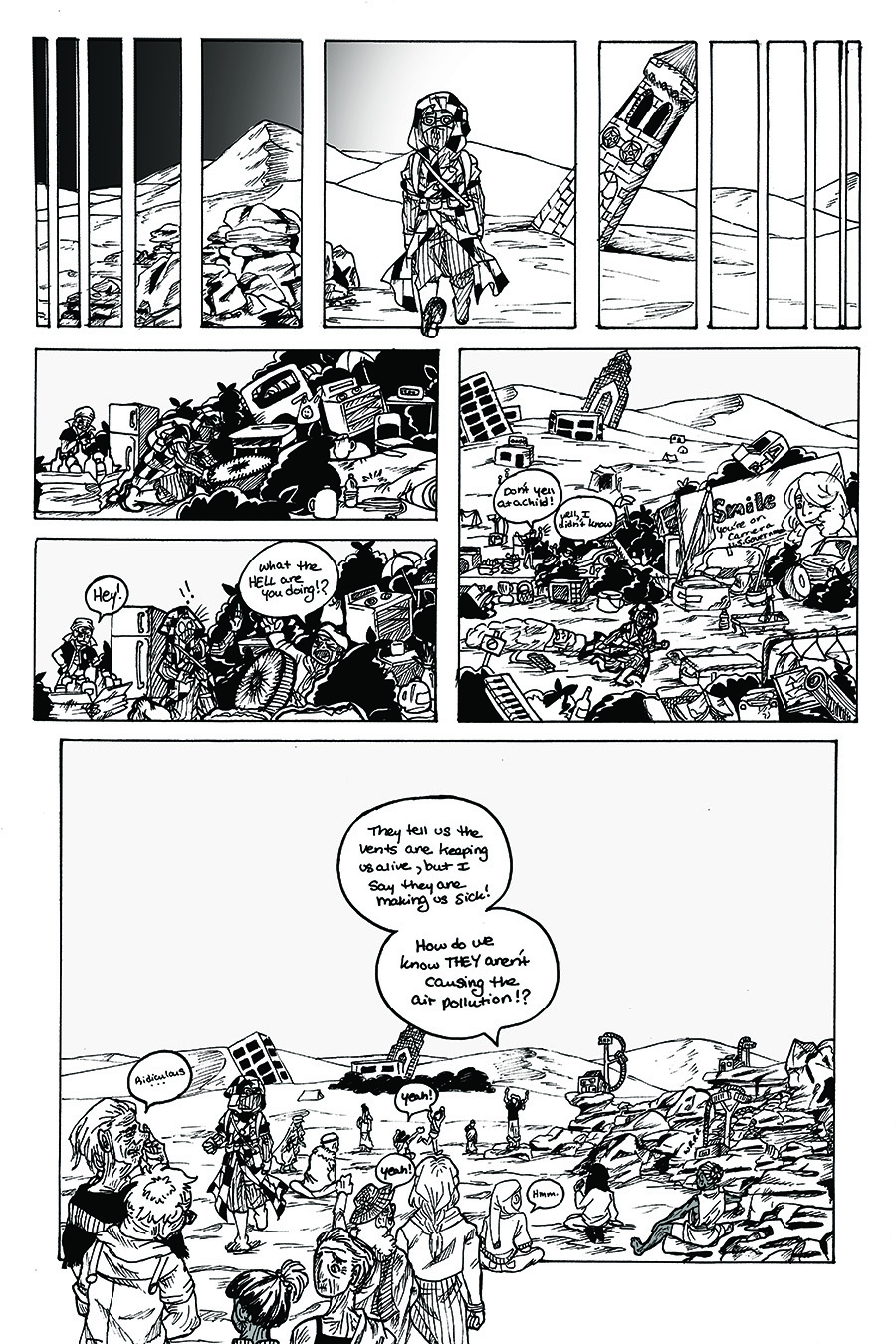 Through the eyes of a child, you will be invited into a world we are careening toward already. In this Graphic Novel, desert rules and the air quality is so poor people have taken to wearing masks and building air vents to keep the smog at bay. Trekking across this new yet familiar world, the main character, Child, looks for the last tree on Earth and in the process finds much more. In this future landscape, what vestiges of humanity are left for Child to inherit? The Last Tree explores issues of self-reliance, art, education and abuse in the form of a journey that inspires empathy and intrigue.