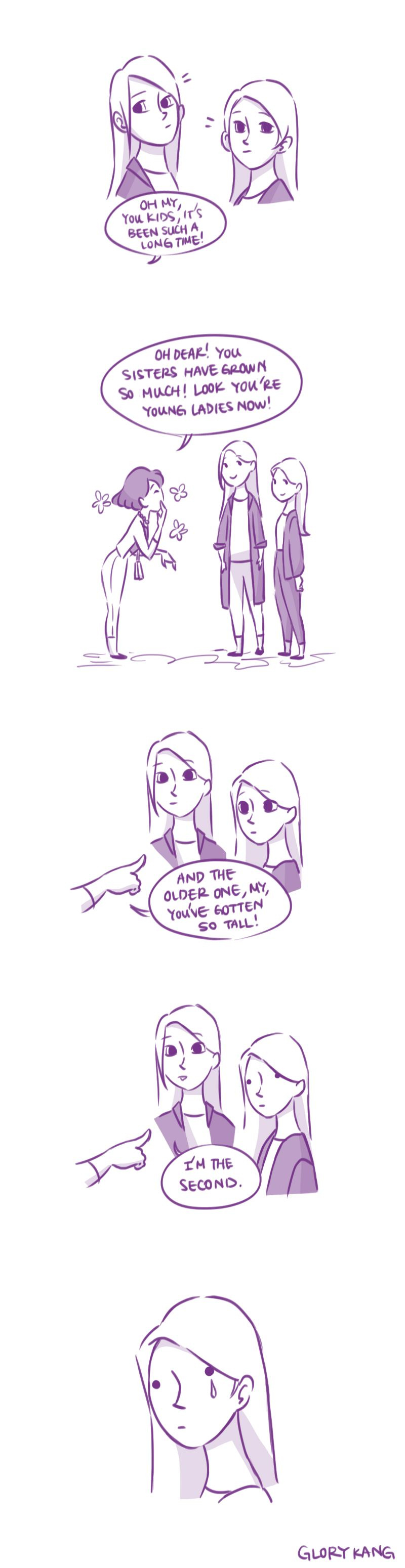 A single tear rolled down her cheek... 5 - 7cm lower than if it had rolled down her sisters'.