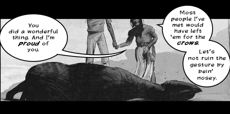 With another tower finally won, the stranger succumbs to an infected wound! But luck might still be on his side, as he is found by an elderly man in the empty desert. Will this old man and his quick-tempered wife be able to save our hero from the brink of death?