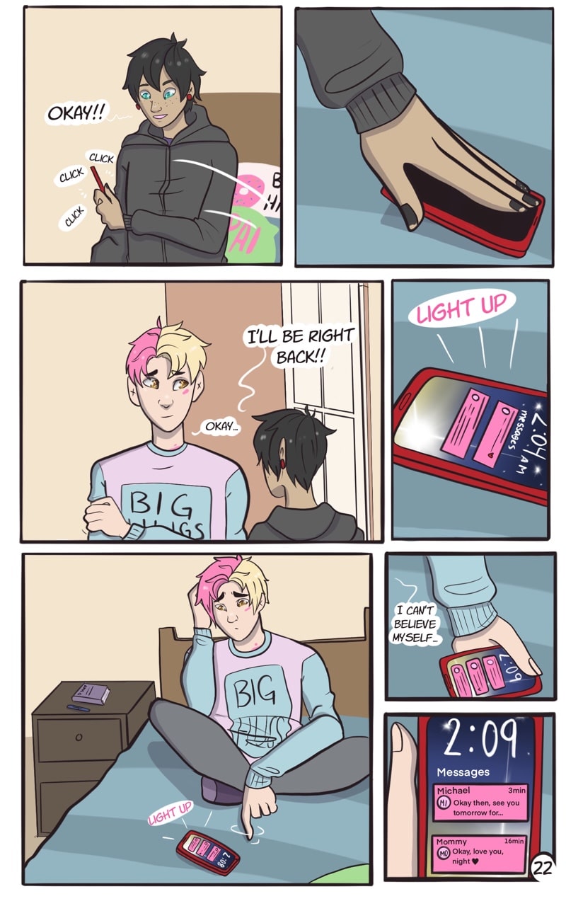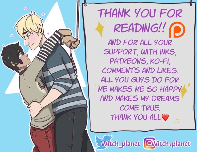 Patreon is currently 30+ pages ahead with TONS of tame & spicier content like 4 NS-FW pieces a month, Character Audios, AUs, Monthly Stickers AND MORE!