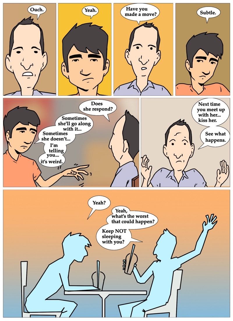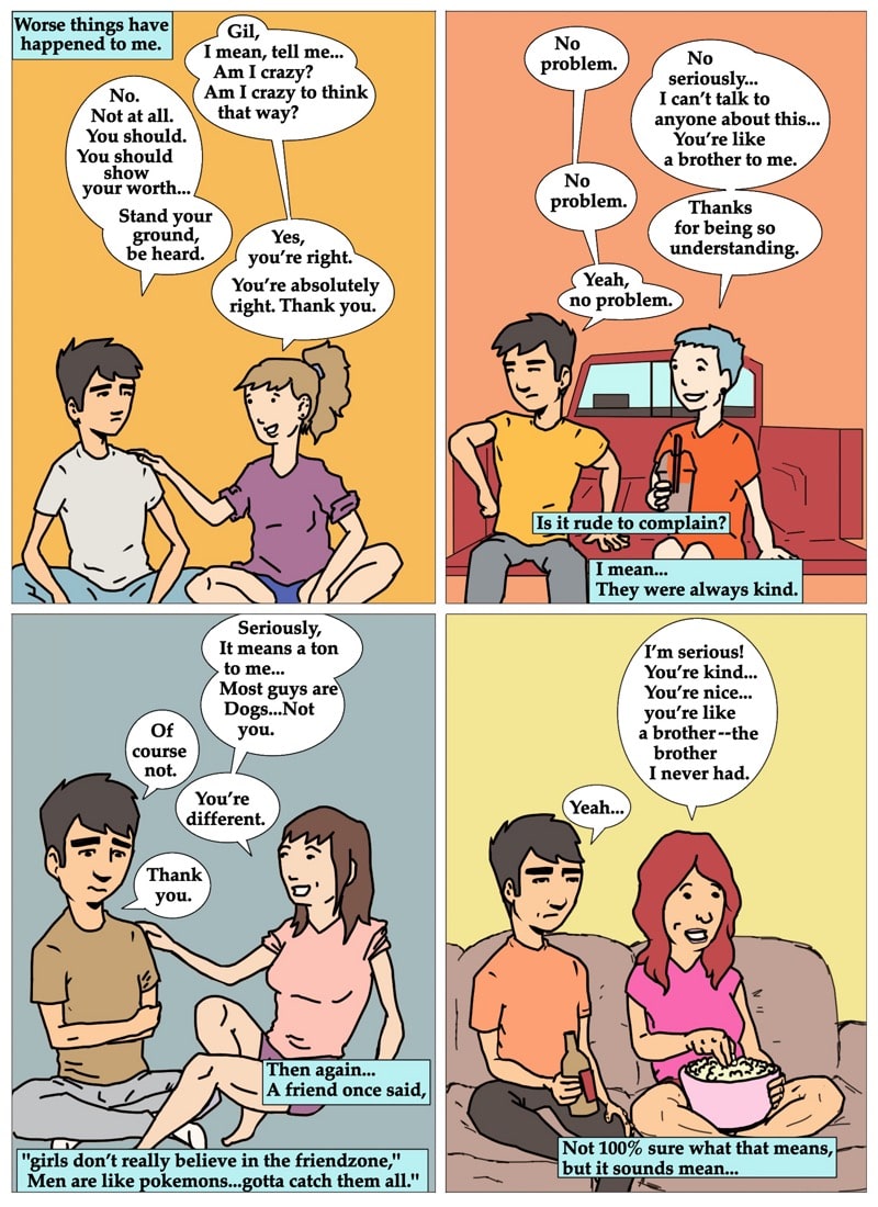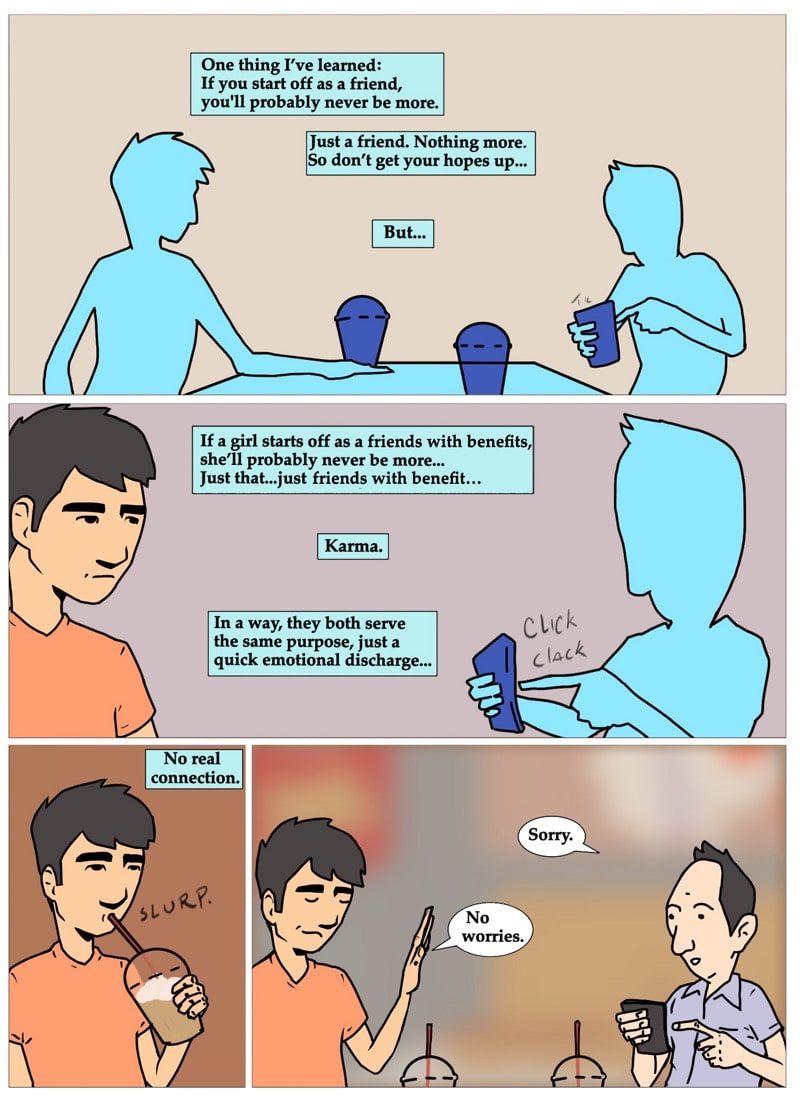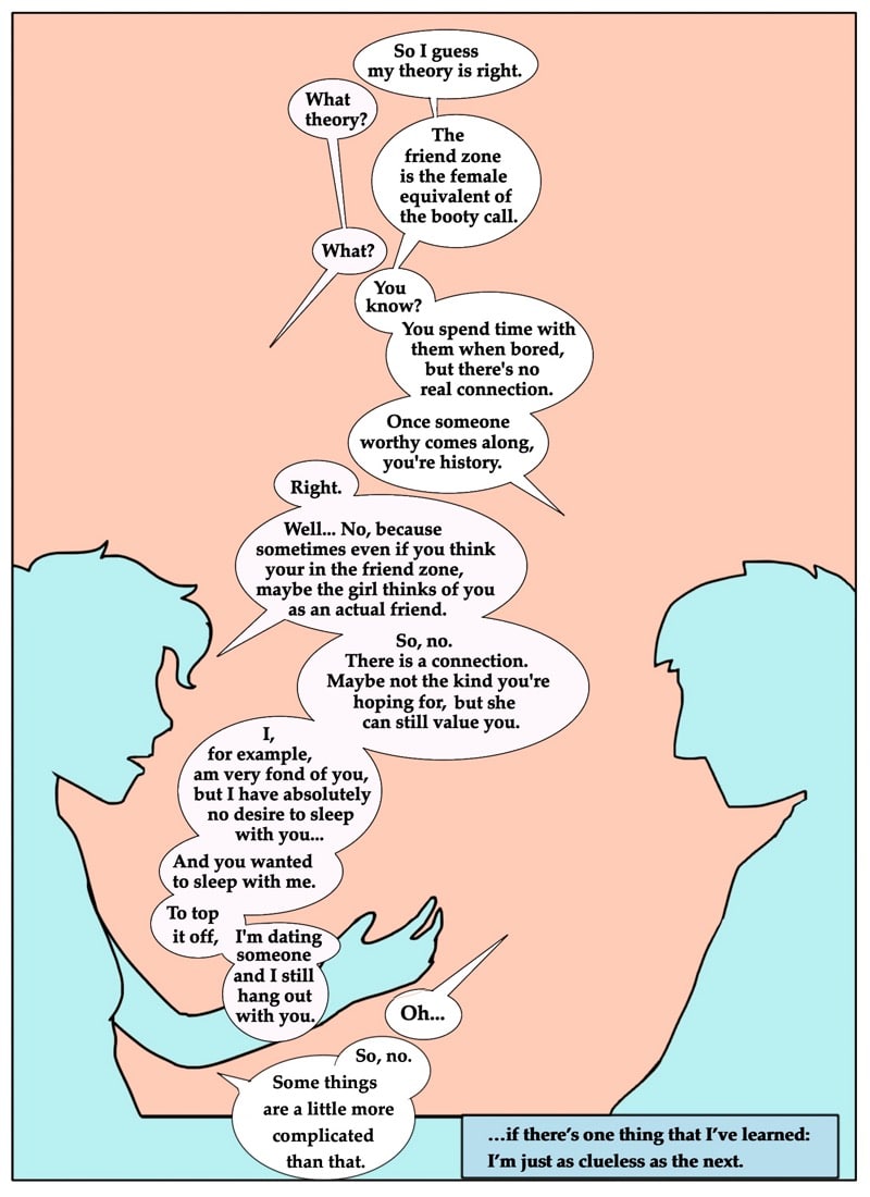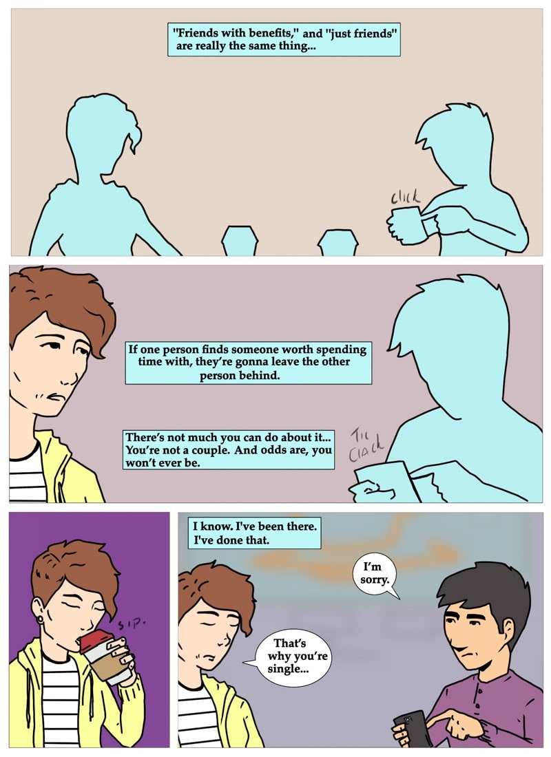 Gil contemplates the similarities of being just a friend and being in a friends with benefits relationship. written and illustrated by david chairez vitela